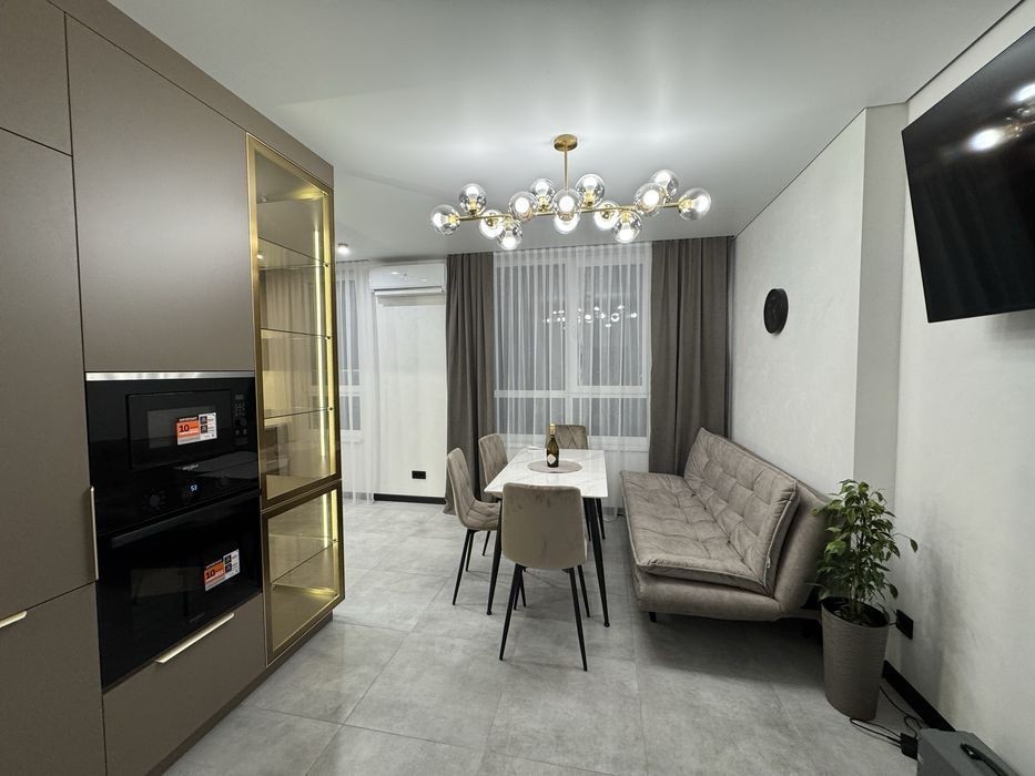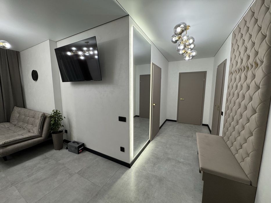 Продається 2кімнатна новобудова (кухня студія і 2 окремі кімнати) в зданому будинку в центрі міста по вул. Київська. Квартира з сучасними дизайнерським євроремонтом, вмонтованими меблями та вбудованою технікою (холодильник, духшафа, мікрохвильова, посудомийка, пралка і тд) 2 кондиціонера, 3 плазми. Тепла підлога, батареї, 2 контурний газ котел. Гардеробна кімната. Ідеальний 5 поверх. Панорама на все місто! Вільна парковка, дитячі майданчики, великий торговий центр. Розвинута інфраструктура. Ліфт працює 5хв до драмтеатру
