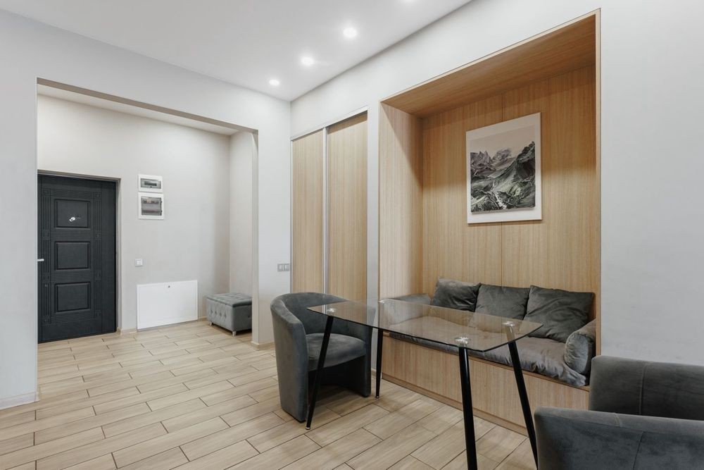 Спальня и кухня студия в центре в новострое Военный спуск 7 эт 8 эт дома 67м Стильная современная квартира с индивидуальным отоплением и газом 2 спальная кровать, диван Посудомоечная машина, микроволновка Квартира полностью укомплектована мебелью и техникой 2 балкона Охрана Подземный паркинг, лифт Вид на море и город До Дерибасовской 5 мин пешком