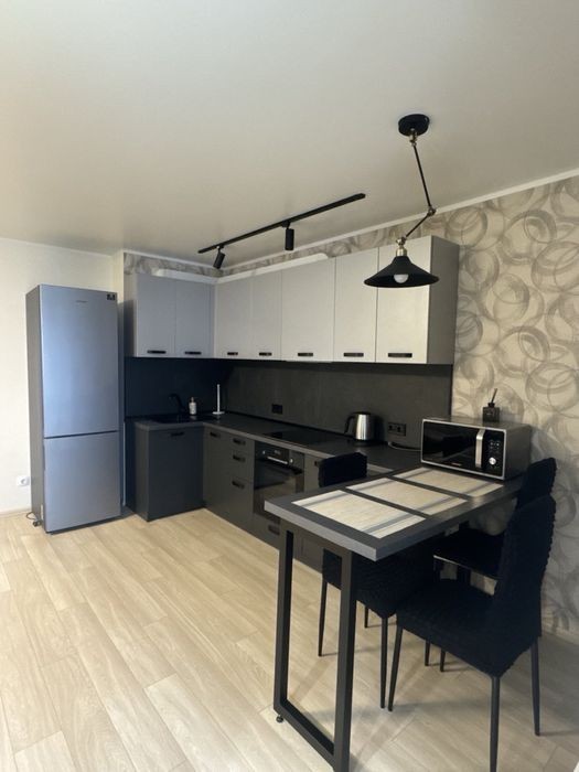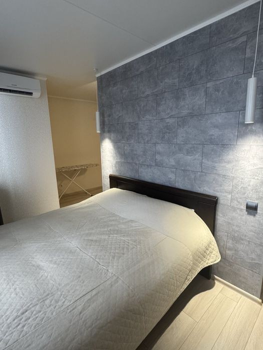VIP однокімнатна квартира тільки після нового ремонту. В квартирі є нове двоспальне велике ліжко з ортопедичним матрасом, диван, шафа-купе, журнальний столик, вбудована кухня. Для Вашого комфорту квартира обладнана: Кондиціонером, Бойлером, Wi-Fi, СВЧ-піч, Ел-чайник, Супутникове ТВ, СТ-машина автомат та кольоровою підсвіткою натяжної стелі. Поряд цілодобовий супермаркет, аптека, ресторан, кафе, зупинка громадського транспорту, охороняєма стоянка. Працюємо цілодобово!