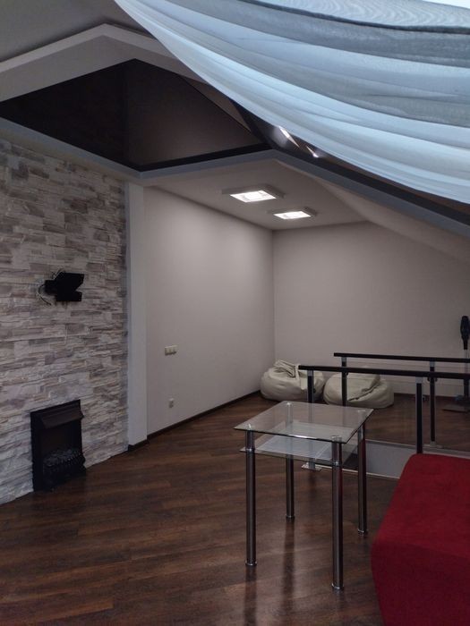 Оренда дворівневої квартири загальною площею - 100 м2 в ЖК Фільварок на вул Марка Вовчка район ДПЗ Авторський проект та дизайнерський ремонт 2 поверх трьох поверхового цегляного будинку. Євро двійка з великою камінною залою з панорамними вікнами, кухнею-студією 15 м2, просторою спальнею з каміном, розміщеною на другому поверсі, суміжний санвузол, велика лоджія з гарним краєвидом Автономне газове опалення двох контурний котел, лічильники на газ, воду.е. ектроенергію, 2 каміни, обгороджена парканом та закрита для сторонніх осіб прибудинкова територія. Встановлено систему відеонагляду та охорони, проведено інтернет. Важливим бонусом для покупця є великий облаштований підвал 12 м2 та власний великий окремо збудований цегляний гараж для Вашого авто! Чудова затишна локація з хорошою транспортною розв'язкою та добре розвинутою інфраструктурою. Поруч є все необхідне для Вашого комфортного проживання.
