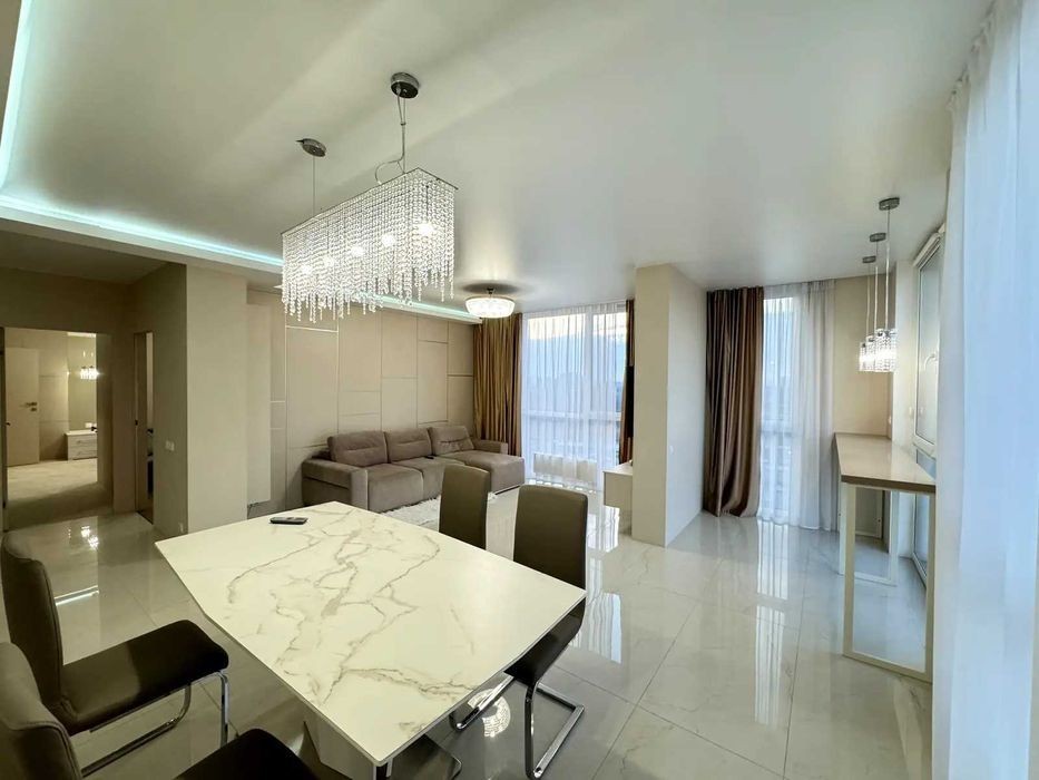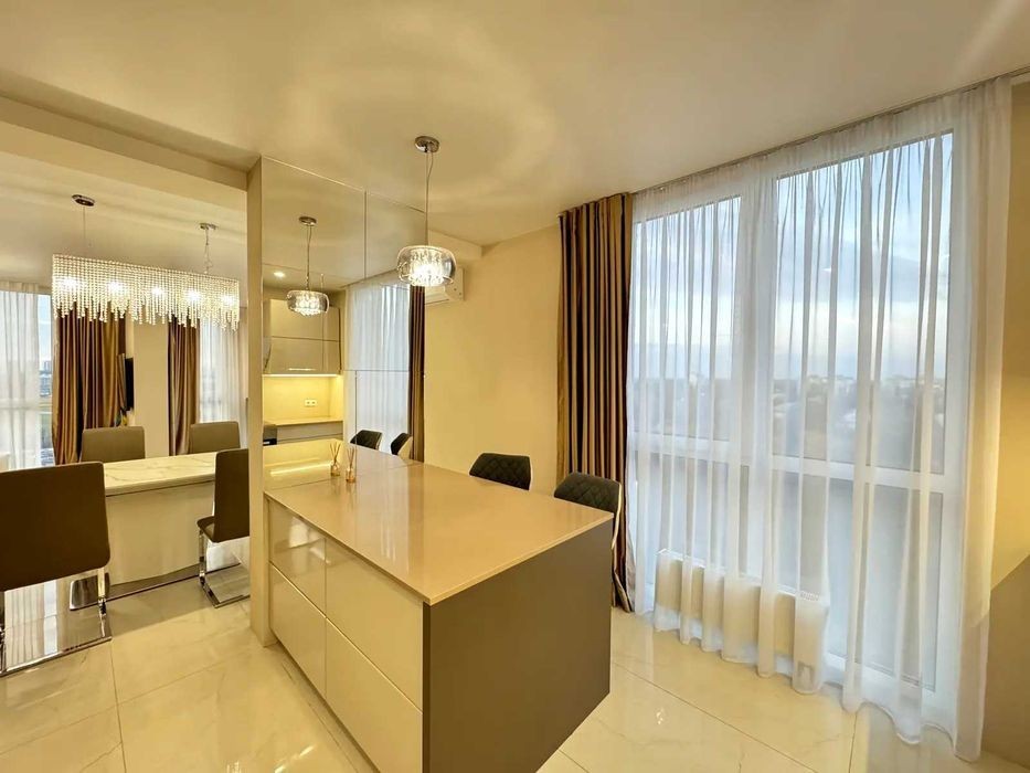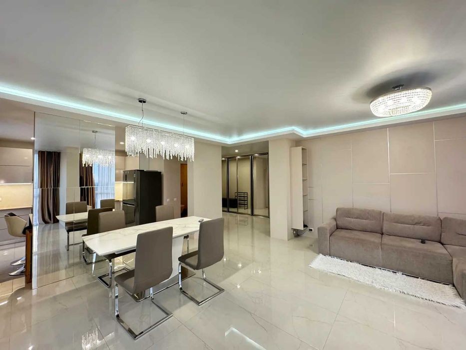 ЖК Файна Таун, вулиця Салютна 2. Закритий сучасний житловий комплекс з власною інфраструктурою. Пропонується простора та стильна квартира з сучасним ремонтом. Загальна площа 99м2. Ідеальна пропозиція для сім'ї. Простора кухня-вітальня, Дві окремі кімнати, два санвузли. Сучасні меблі та побутова техніка. Натуральні відтінки, якісні оздоблювальні матеріали та декоративні елементи додають інтер'єру затишку. Квартира повністю готова до заселення; Ціна: 253 000 USD