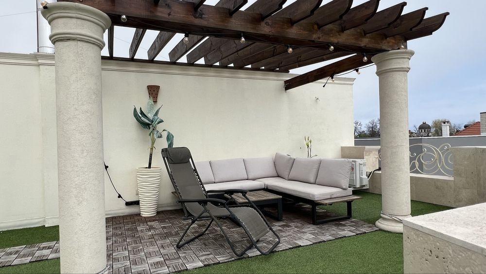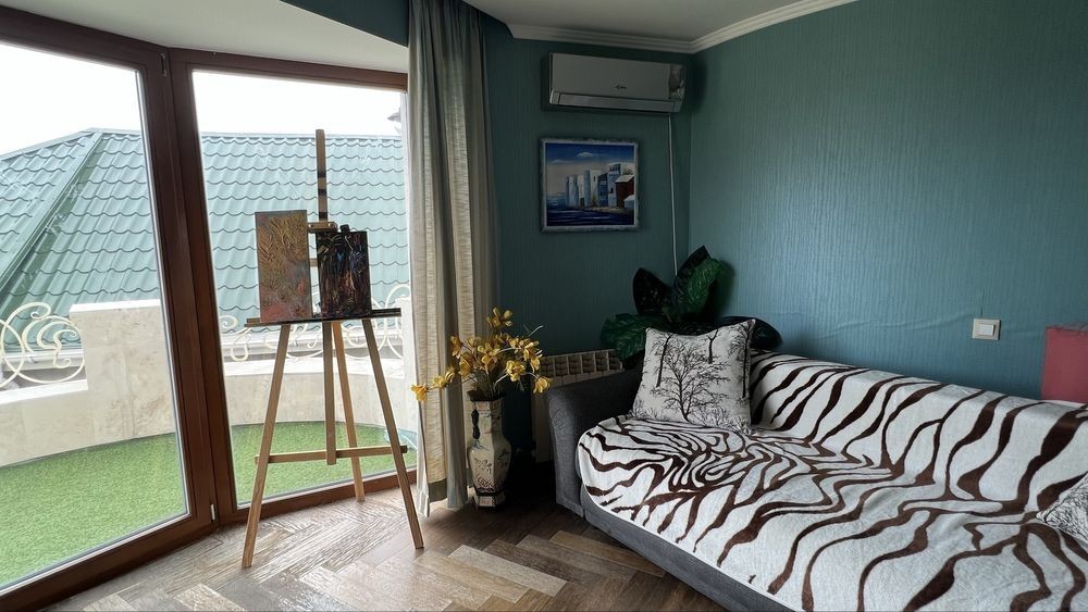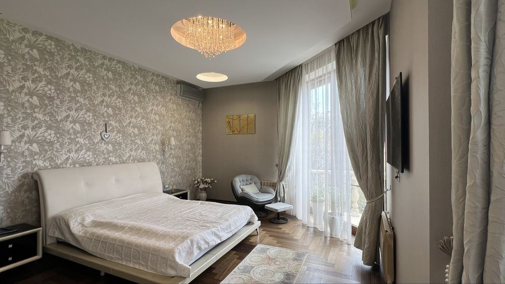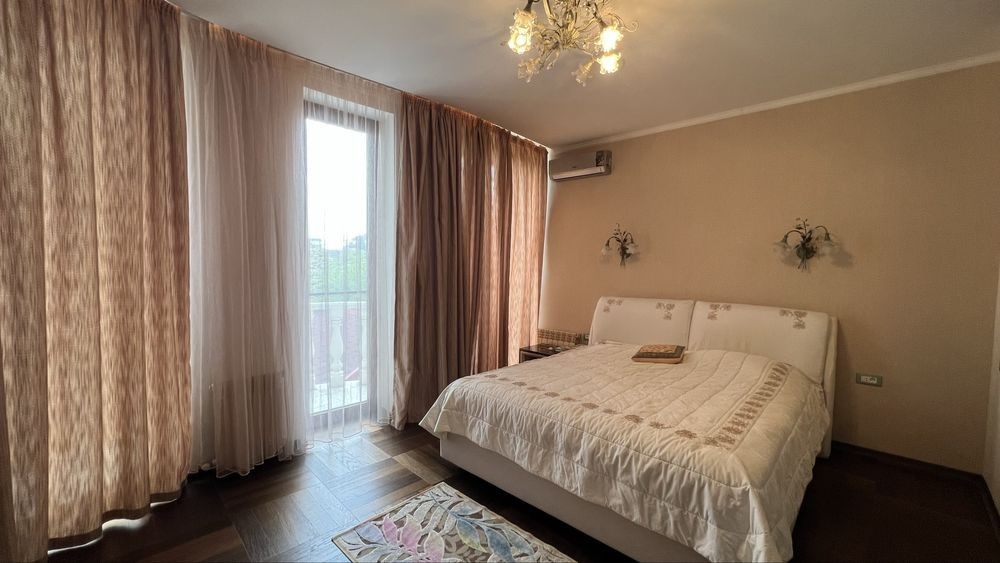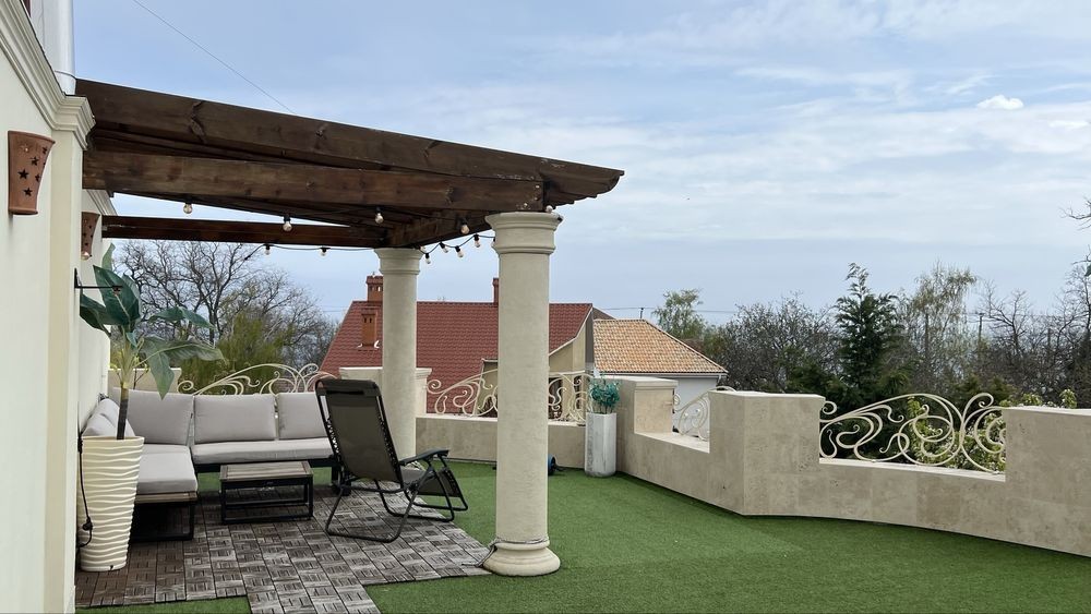 Закрытый охраняемый кооператив на 12 фонтана. Красивый зеленый двор. Крытая беседка, с большим столом, диваном, зоной барбекю, плитой, умывальником. Большой подвал -бомбоубежище. В нем комната с диваном. Сауна. Санузел. Тренажерный зал. В доме 4 спальни с кроватями, с балконами. две из которых мастер спальни с санузлами. На третьем этаже комната с диваном и выходом на огромную террасу. На ней беседка с диваном, шезлонгами, зоной загара и видом на море. Можно поставить разборной бассейн. ( на крыше или во дворе ) Цена на год 2500 долларов в месяц Есть подробный видеобзор каждого этажа и двора +38********35 риэлтор Марта
