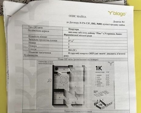 Ексклюзив Продається 1-кімнатна квартира - ЖК “Паркова алея”, Угорники Вул. Героїв Миколайова Площа 37 м² | Поверх 2 | Переуступка • Французький балкон - вхід із кімнати та кухні • Окрема гардеробна • Кухня 11 кВ • Вікна у внутрішній двір • Можна вже йти роботи ремонт