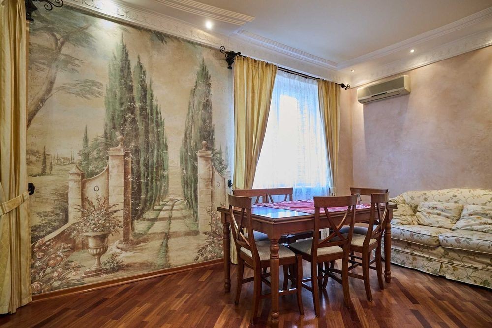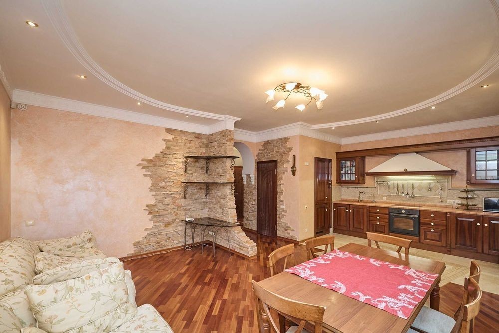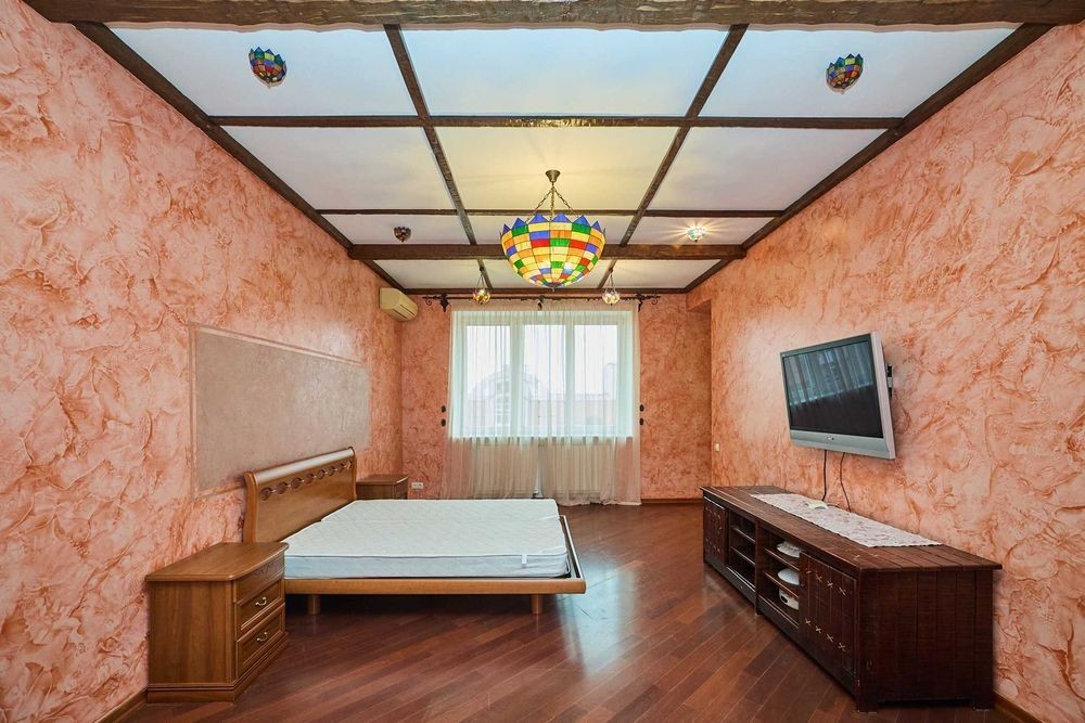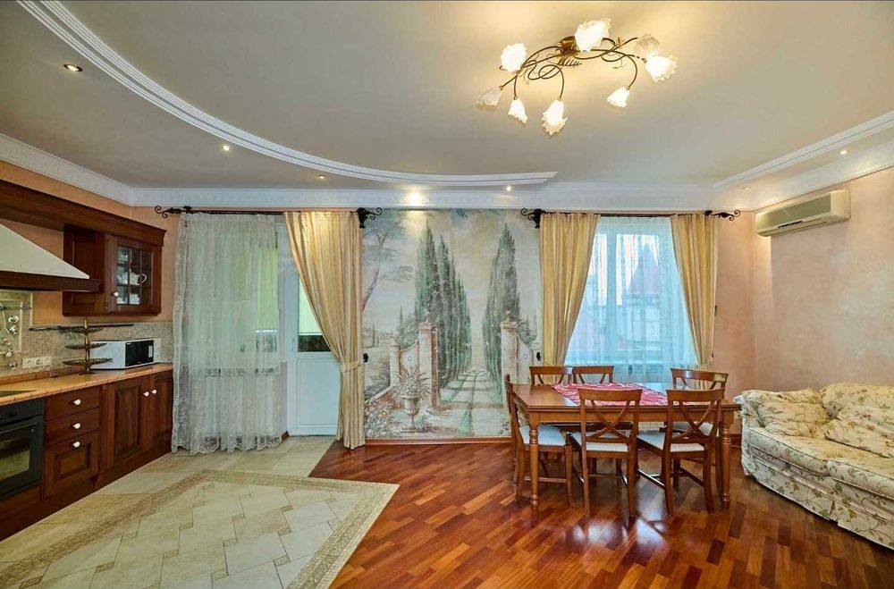 Оболонські Липки! Від власника! Без комісії! Вашій увазі простора і дуже стильна 3к квартира, в престижному районі Києва, на Оболонській набережній, в будинку бізнес класу, по пр-ту Володимира Івасюка, 10-а, корпус 1. Квартира розташована на 6-му поверсі, 15-ти поверхового цегляного будинку, загальною площею 117м2, вікна якої "виходять" на набережну Дніпра. Квартира з дизайнерським ремонтом, виконана в середземноморському стилі, навіяному величчю і красою Барселони, творчістю Ґауді, свіжістю Канарських островів і спільною любов'ю до Іспанії, де проводили багато часу господарі квартири, які вклали в ремонт не тільки великі кошти, але й душу, разом з дизайнером і майстром, який втілив це все в життя. Квартира в хорошому житловому стані зі зручним плануванням, яка укомплектована всім необхідним, для комфортного проживання. В кожній кімнаті встановлений кондиціонер. Паркет в квартирі з екзотичного дерева. Стіни з венеціанською штукатуркою, оздоблені фарбою. Всі двері з суцільного дерева, фірми "Гран-Прем'єр". Кожна кімната, як і кухня, і лоджія, і ванна, і навіть туалет, це окремий витвір мистецтва, який втілив в життя відомий київський майстер. Використовувались дуже якісні матеріали, а вся плитка везлась під замовлення з Іспанії та Італії. Кухня об'єднана з залом, де фішкою інтер'єру є італійська фреска: "Кіпарісова алея", яка була зроблена під замовлення в Італії і привезена в Київ, саме для цієї квартири під розмір стіни. Сама кухня, фірми "Skavolini", також робилась під замовлення в Італії, яка укомплектована всім необхідним: електроплита, духова шафа, посудомийна машина, вбудований холодильник, величезне карго і витяжка. Обідній стіл і стільці, також фірми "Skavolini", посуд "Berghoff", сантехніка "Roca" (Іспанія). Також встановлена система зворотнього осмосу, для очищення води. В кухні-студії є м'який куточок, з двома розкладними диванчиками, зробленими в Італії. Спальня зроблена в теплих тонах заходу сонця, з великим каміном і люстрами ручної роботи з вітражного скла, в стилі "Тіфані". Дитяча кімната укомплектована ліжком, письмовим столом з дерева і великою шафою фірми "Skavolini". Ванна кімната оздоблена мозаічною плиткою, в стилі римських терм, з теплою підлогою і укомплектована великою ванною-джакузі з гідромасажем, великим зручним умивальником з величезним дзеркалом на всю стіну, інсталяцією і біде. Вся сантехніка з Іспанії (Roca) Навіть туалет, має свій неповторний дизайн, в стилі плямистих коровок, елементи для якого звозились з усього Світу. Плитка з Іспанії, м'які іграшки (корівки) з США та Франції, а чашка і ємність для жидкого мила, у вигляді веселих корівок, з Голандії. Є гардеробна, зі зручними стілажами, а також окремо "постірочна" з пральною машиною. Вихід на балкон-лоджію, оздоблену іспанською плиткою, є як зі спальні, так і з кухні, де зручно відпочивати в теплу пору року, після трудових буднів, спостерігаючи за нашим величним Дніпром. Квартира обладнана протипожежною сигналізацією, а також під'єднана до пультової охорони. Сам будинок бізнес класу, побудований по індивідуальному проекту із цегли, з двома ліфтами, конс'єрж сервісом та системою відеонагляду, що сприяє безпеці мешканців. Великий двір з дитячим майданчиком, місцем для відпочинку з лавочками і безліччю місць для паркування. Також є підземний паркінг, який можна використовувати як бомбосховищ
