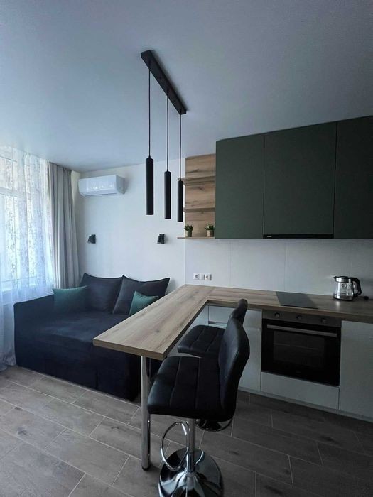 Затишна 1-кімнатна смарт- квартира з дизайнерським ремонтом в ЖК Варшавський мікрорайон, вул. Олександра Олеся, 2А шукає орендаря. Поверх 4/13. Площа 20/12/5. Квартира тепла та світла, на південну сторону світу. Зручні шафи, розкладний диван, вбудована кухня. Нова техніка топових виробників: варильна поверхня, пральна машина, холодильник, бойлер, кондиціонер, мікрохвильова піч. Ціна 15 000 грн. Комісія АН 50%.