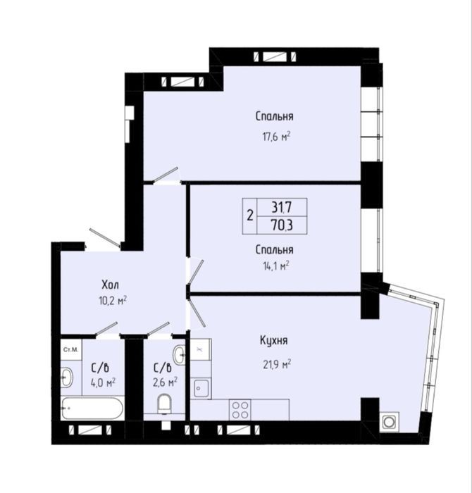 Продаж просторої 2 квартири площею 70.3 м. кв. на 7 поверсі. Велика кухня-вітальня 21,9 м², дві окремі кімнати, роздільний санвузол та місткий коридор. З вікон - чудовий краєвид, східна сторона. Розвинена інфраструктура та зручна транспортна розвʼязка