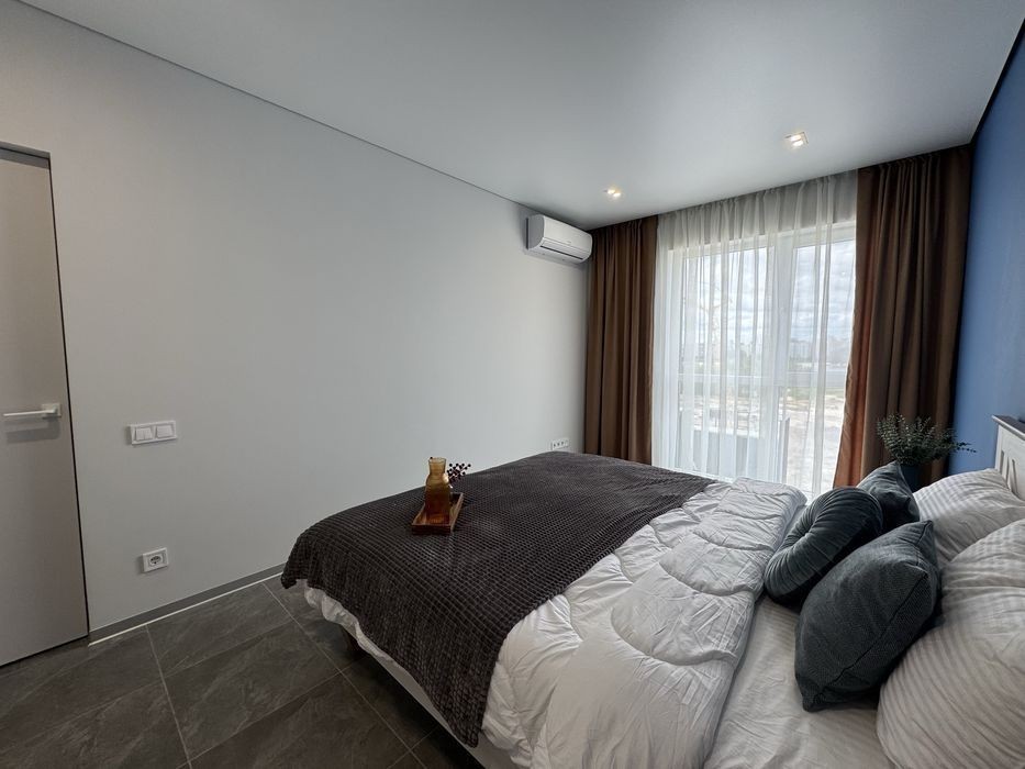 Квартира в найкращому комплексі на Митниці- Сіті-парк Новий сучасний ремонт, меблі, техніка Окрема спальня та зонована кухня Є вся необхідна техніка Автономне газове опалення Сам комплекс на березі Дніпра Двір має спортивні майданчики та альтанку з барбекю Закрита територія Є басейн Вартість 23000 грн + к. п Оплата перший місяць та страхова сума Послуги АН 50%