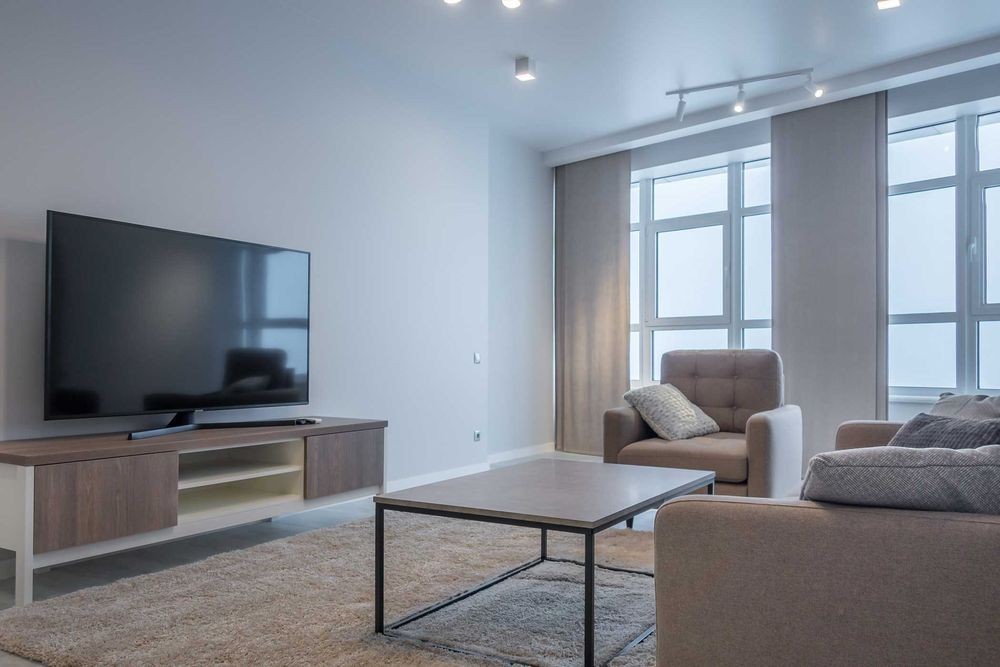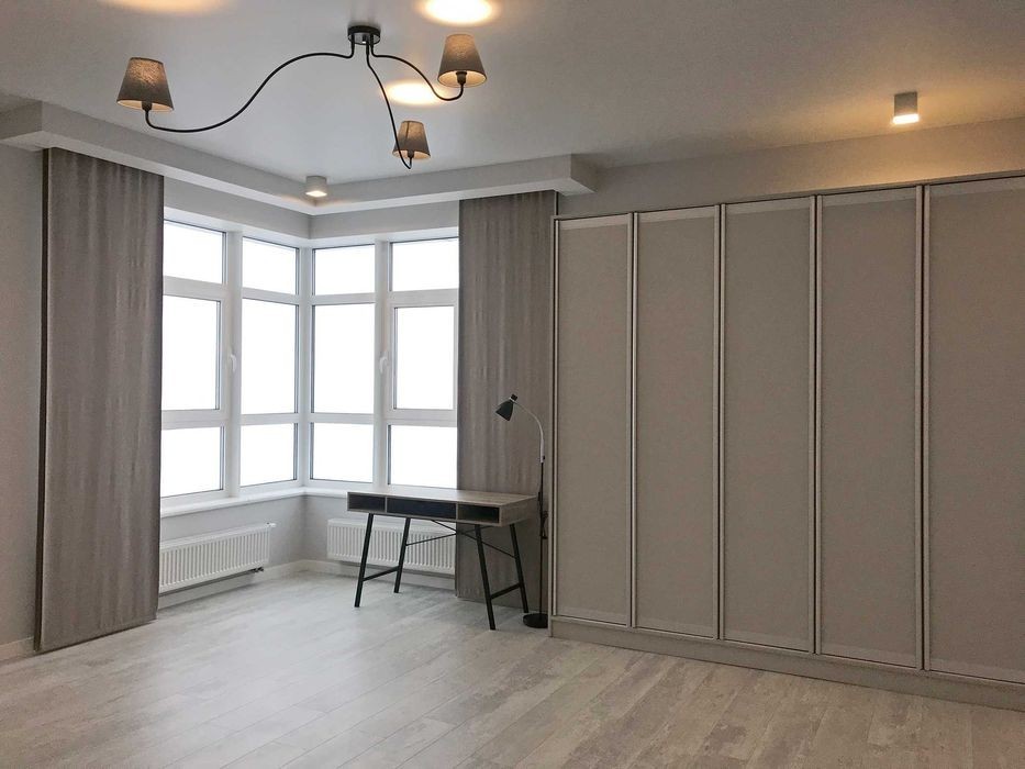 Кловский спуск, 7а. Аренда квартиры в новом киевском небоскребе на Печерске. Удобное место в 5 минутах ходьбы от метро Кловская, 10-15 минут до Мариинского парка, Бессарабского рынка, ТРЦ Гулливер и Арена, где есть спорт-клуб, супермаркет, кинотеатр и т. д. Квартира расположена на 26 этаже 47-этажного дома с подземным паркингом, охраной и скоростными лифтами. Общая площадь квартиры 155 кв. м. В квартире большая кухня, гостиная, 2 спальни, 2 полноценных с/у и 2 гардеробные. В квартире панорамные окна и много света. Квартира укомплектована всей крупной бытовой техникой (включая стиральную машину, бойлер, кондиционеры, оборудованную кухню), полностью меблирована. Паркоместо (убежище) в нижнем паркинге входит в стоимость аренды!