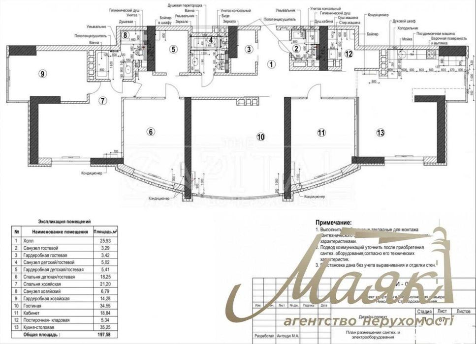 Предлагается 5-комнатная квартира с панорамным видом, в ЖК Солнечная Ривьера, который находиться по ул. Никольско-Слободская 3-Б, Днепровский р-н, ст. м. Левобережная. Общая площадь квартиры: 197,58м2 Этаж 20/30 Состояние: без ремонта. Планировка квартиры в один уровень: - Кухня - гостиная - Мастер-спальня с своим санузлом и гардеробной - Спальня детская - Гостевая/кабинет - Большая комната свободного назначения - Прихожая - Два санузла гостевых - Две гардеробные - Постирочная. В квартире выполнены частные работы: разводка электричества и сантехники. Квартира без ремонта. Есть дизайн проекта. Документам более трёх лет, готовы к сделке. Возможен расчёт криптовалютой. Жилой комплекс «Солнечная Ривьера» находится в прибрежной зоне Русановского пролива. За проектом застройщика в комплексе будут видовые квартиры с панорамными окнами, обустроена набережная для прогулок с игровыми площадками для детей, зоны отдыха и пляж. На территории комплекса есть гостевая парковка, а заезд в сам ЖК с шлагбаумом. В доме есть охрана, консьерж, видеонаблюдение. Электронный доступ во двор. Лифт работает через ключ. Если вас заинтересовало данное предложение звоните по указанному номеру для уточнения всех деталей. #27028