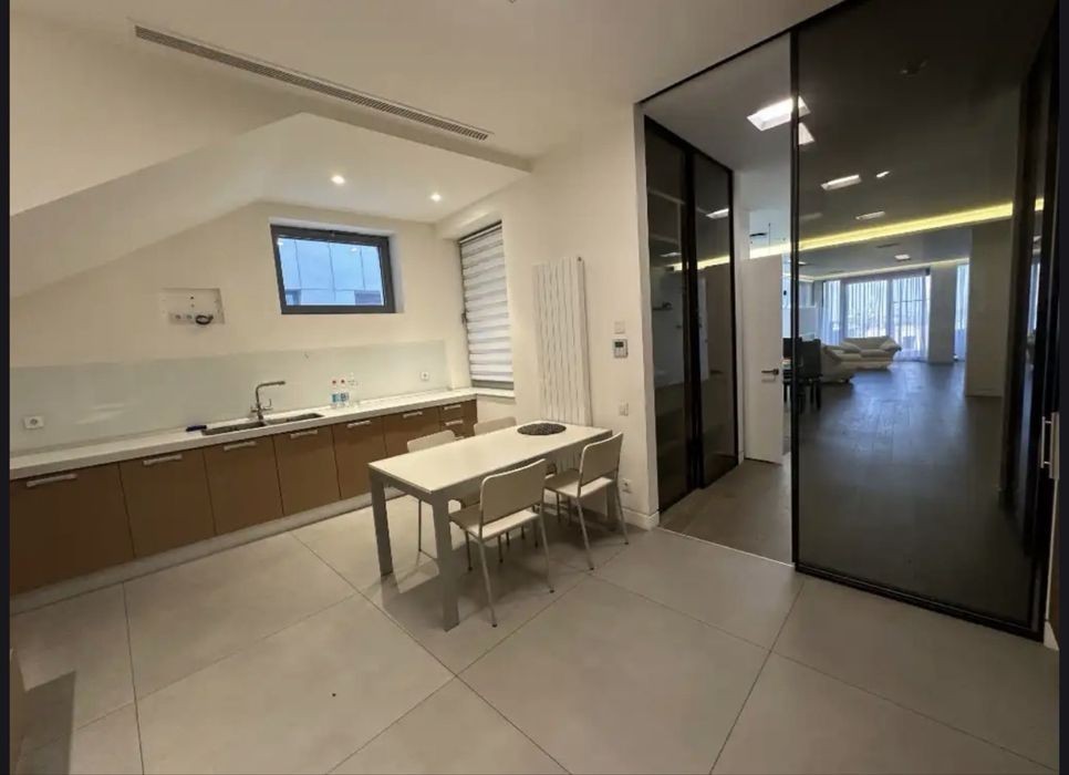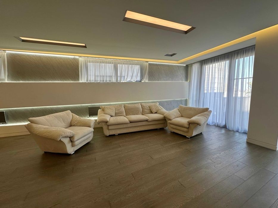 Квартира с террасой в Жк Амфитеатр (парк Шевченко) Площадь -235 м2 Спланирована: - Кухня-столовая - Гостиная с выходом на террасу - мастер-спальня со своим гардеробом, санузлом и выходом на террасу - 2 детские спальни со своими гардеробными - детский санузел - гостевой санузел - постирочная - терраса - 37 м2 - 2 парковочных места в паркинге (в стоимости). Квартира оборудована брендовой мебелью и техникой. Индивидуальная система кондиционирования, счетчики на все, круглосуточно охраняемая территория, собственная парковая зона, в комплексе есть генератор (работают все инженерные сети, лифты, аварийное освещение). Вид на р. Днепр. Цена 2300 $ + коммунальные