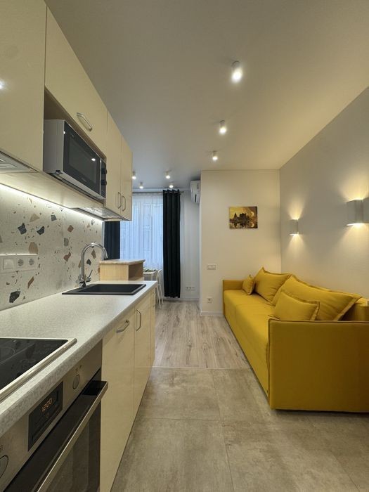 Пропонується в оренду стильна та функціональна Smart-квартира в сучасному житловому комплексі Park Land, за адресою: вул. Березова, 40, Голосіївський район. Зручне розташування - 15 хвилин пішки до метро Васильківська. Попри невелику площу, квартира має раціональне планування: • Кухня, обладнана всією необхідною технікою, включаючи посудомийну машину, духову шафу, мікрохвильову піч, варильну поверхню, холодильник і повний набір посуду. • Зона відпочинку з розкладним диваном, телевізором і кондиціонером. • Спальна зона з комфортним двоспальним ліжком і великою шафою-купе. • Санвузол з теплою підлогою, пральною машиною та сучасною сантехнікою. Квартира повністю готова до заселення - ідеально підходить для однієї людини або пари. Без тварин