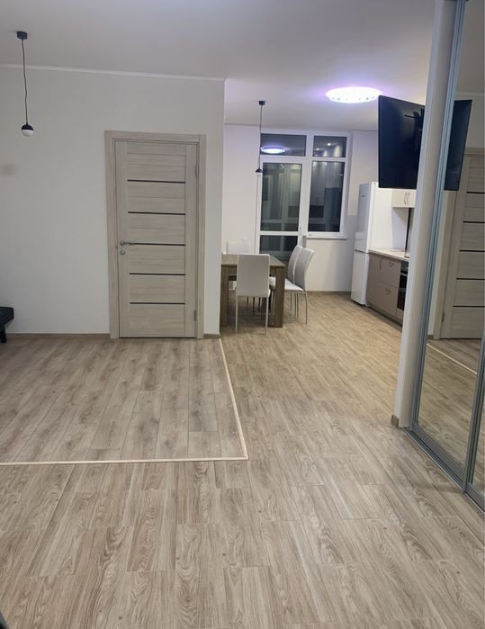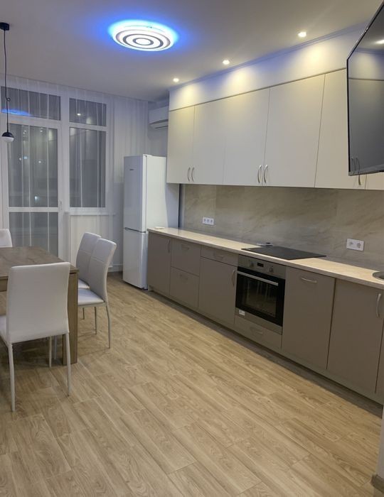 Пропоную в оренду євро2шку (кухня-вітальня з диваном) и спальна кімната. 10 поверх Адреса: Проспекті Європейського союзу 41Г. Квартира повністю укомплектована усім необхідними для комфортного проживання: меблями та технікою: пральна машинка, посудомийна машина, бойлер, варильна поверхня, витяжка, духова піч, холодильник, піч, кондиціонер, розкладний диван, шафа-купе. Є кондиціонер. Вікна виходять на внутрішнє подвір'я. Без тварин. Комісія 50%.