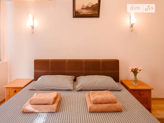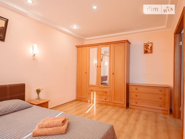 Апартаменти з двома спальнями розташовані за адресою: вул. Новогоспітальна, 5, поблизу станції метро Печерська, всього за 7 хвилин ходьби. Також у 15 хвилинах ходьби розташована станція м. Кловська. У пішому доступі від апартаментів є супермаркет, ресторани, кафе, бари, магазини одягу, зоомагазин та відділення інтернет-магазину «Розетка». Квартира світла та оформлена в пастельних відтінках різних кольорів. Вітальня виконана у ніжному блакитному кольорі з пісочними деталями. У ній розташувалися меблі та техніка для приємного проведення дозвілля: диван, журнальний столик, тумба з телевізором та обідній стіл зі стільцями. Зона кухні знаходиться в невеликому заглибленні, виконана в приємних відтінках жовтого та зеленого, з деревним гарнітуром. У кухні є все необхідне для комфортного проживання: кухонна стінка з вбудованою раковиною, чайник, плита, духовка, витяжка, мікрохвильова піч, холодильник і холодильник. Спальня оформлена в теплий персиковий колір з великою кількістю дерев'яних меблів. Усередині є все для приємного відпочинку: двоспальне ліжко з ортопедичним матрацом, тумбочки, бра над ліжком, комод з дзеркалом і шафа-стінка для розміщення речей. Ванна кімната поєднана з туалетом у класичному поєднанні, біло-синіх кольорах. Усередині розташовані: ванна, туалет, умивальник, тумбочка та дзеркало з підвісною поличкою. Завжди надані свіжа постільна білизна, чисті рушники та гігієнічні засоби першої необхідності. Вартість оренди квартири у вихідні - уточнюйте за номером телефону.