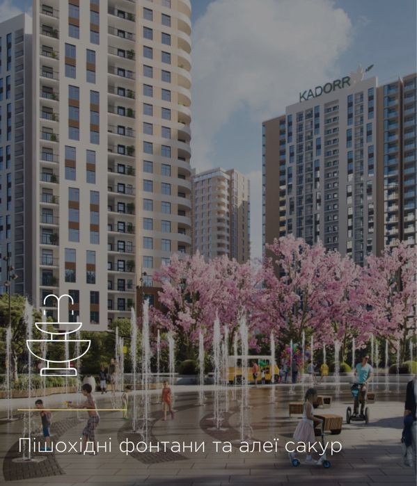 Продам 1-кімнатну квартиру в KADORR City, 23 поверх, 42,3 м² Пропонується простора та світла 1-кімнатна квартира у сучасному кварталі KADORR City, розташованому поблизу 4-ї станції Великого Фонтану. Параметри квартири • Площа 42,3 м² • 23-й поверх із 24 • Правильне та зручне планування • Високі стелі до 3 м • Панорамні вікна з видом на місто • Можливість функціонального зонування простору Про комплекс • Розвинена внутрішня інфраструктура • Дитячі та спортивні майданчики, прогулянкові алеї • Пішохідні фонтани та зелені зони • Супермаркет, аптеки, стоматологія, салони, банки • Підземний паркінг з автомийкою • Сучасні швидкісні ліфти • Мобільний застосунок KADORR Digital для сервісу та управління Підходить для проживання та інвестицій! Продается светлая и просторная 1-комнатная квартира в современном квартале KADORR City, рядом с 4 станцией Большого Фонтана. Параметры квартиры • Площадь 42,3 м² • Этаж 23 из 24 • Правильная планировка • Высокие потолки до 3 м • Панорамные окна и вид на город • Возможность удобного зонирования пространства О комплексе • Развитая внутренняя инфраструктура • Детские и спортивные площадки, прогулочные аллеи • Пешеходные фонтаны и зеленые зоны • Супермаркет, аптеки, стоматология, салоны, банки • Подземный паркинг с автомойкой • Скоростные лифты • Мобильное приложение KADORR Digital для сервиса и управления Подходит для проживания и инвестиций !