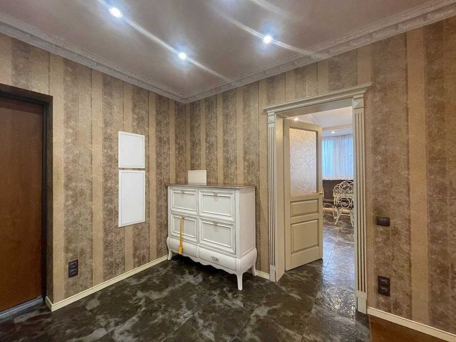 Оренда великої одно спаленої квартири на вул. Урлівська, буд. 21 Sоб 76 кв. м. з ремонтом та меблями! 12/25 пов. Дизайнерський ремонт у класиці, повністю мебльована та оснащена технікою, у кожній кімнаті кондиціонери, 2 санвузли, є ванна та душова. Планування: велика вітальня, окрема спальня з санвузлом, окрема кухня. Вітальня прохідна, але з розкладним диваном! Зручне планування для проживання пари! Меблі Італія та Німеччина - масив дерева, паркет - горіх. Тепла підлога. Лише довгостроково. Є відео! 25000 грн за місяць плюс комунальні (є лічильники на все - вода та опалення! **********лена