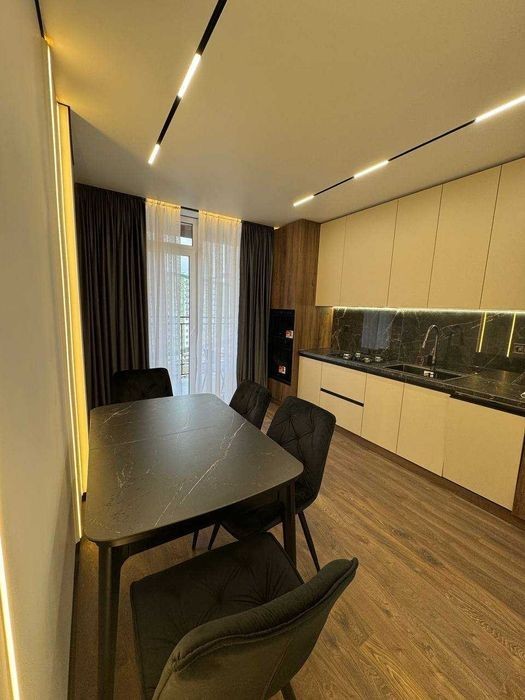 Продаж 1.5 -кім, з сучасним ремонтом ЖК Фемілі плаза, вул. Ю. Пелеша у зданому будинку. Площа -48 кв. м. Кухня-студія і окрема спальня. Сучасний ремонт: меблі та побутова техніка. Все залишається. Панорамні вікна. Підігрів підлоги по всій квартирі. Індивідуально газове опалення, двохконтурний котел. Красивий краєвид. Два балкони. Закритий внутрішній двір. Поруч річка, парк, школа, центр. Паркінг. Переуступка. Ціна - 94000$