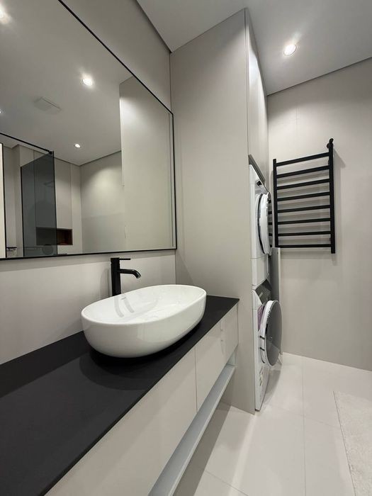 Пропонується в оренду сучасна 2-кімнатна квартира з кухнею-студією в елітному житловому комплексі “Парус” - ідеальне поєднання стилю, комфорту та високих стандартів якості. - Поверх 6 з 13, ліфт працює - Дахове опалення - Простора кухня-їдальня з панорамними вікнами, звідки відкривається неймовірний краєвид на місто - Дві окремі спальні з великими панорамними вікнами, відкривається вигляд на озеро - Вітальня виконана у стриманому.е. егантному стилі - багато світла, панорамні вікна від підлоги до стелі, м'який диван, текстиль у спокійних відтінках і панорамний краєвид, який додає відчуття простору та затишку - Кухня повністю укомплектована преміальною технікою Bosch: вмонтований холодильник, посудомийна машина, індукційна варильна поверхня, духова шафа та мікрохвильова піч, додатково - винний холодильник для поціновувачів якості, пральна та сушильна машина Bosch забезпечують максимальний комфорт у побуті, у кожній кімнаті встановлено кондиціонер, пральна та сушильна машина Bosch забезпечують максимальний комфорт у побуті, встановлені два телевізори - Меблі від бренду Frankof - сучасні, стильні, виготовлені з якісних матеріалів - В одній спальні - власний санвузол з ванною, також є окремий гостьовий санвузол з душовою кабіною - Чудова локація, поруч озеро та парк, кав'ярні