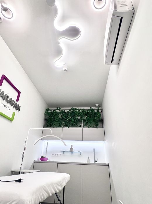 Затишний кабінет у салоні краси, що діє, розташований у престижному житловому комплексі Нова Англія (Голосіївський район, Київ). - Повністю оснащений: кушетка, робочий стіл, шафки, розетки, гарне освітлення - Є «мокра точка» (раковина) - зручно для косметології, депіляції, масажу та інших процедур - Тихе, закрите приміщення - приватність для клієнтів - Оптимально під косметолога, масажиста, майстра з брів/вій, перманентного макіяжу та ін. - Графік оренди: довгостроково, позмінний чи фікс місячний - обговорюється Якщо ти майстер, який шукає затишне, комфортне та приємне місце для роботи - у нас є чудова пропозиція саме для тебе! Ціна: 400 грн-час/ 800 грн-день/ 8000 грн-15 змін / 14000 грн -міс Контакти: 09******90
