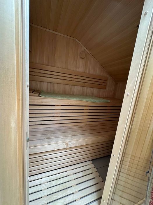 Якщо жити в Бучі, то тільки в цьому районі! Тут Нова забудова та сосни навколо і швидкий виїзд до Києва при потребі. Поруч АЗС UPG, кафе Отаманша, а в 5 хвилинах пішки будується магазин АТБ та новий торгівельний центр. Загальна площа будинку складає 200м, розміщений він у три рівня. На 1-му поверсі розташовані кабінет, велика вітальня з виходом на терасу, окрема кухня, великий санвузол і гараж, щоб і авто було в безпеці. На проміжному поверсі (над гаражем) санвузол, гардеробна та сауна. На 2-му поверсі 3 великі спальні, одна з яких з балконом та санвузлом. Земельна ділянка площею 5 соток, вже виросли декоративні дерева, газон, клумби з квітами. Для догдяду за всим цим є система автоматичного поливу. На задньому дворі ми розташували - басейн розміром 3х8 метрів. Є невеликий фруктовий сад: 2 груші, лохина, малина, смородина, щоб смакувати восени свої вирощені фрукти, а ягоди - влітку. Для зручності користування є автоматичні ворота у дворі та в гаражі. Перед будинком встановлений навіс для двох авто. Відеодомофон з пам'яттю та дистанційним відкриттям хвіртки. Ремонт у будинку зробили 5 років назад. Кам'яні сходи між поверхами, сантехніка Devit, крани Hansgrohe. Газовий котел E.C.A. + додатково електричний котел Tenko. Бойлер DRAZICE на 155 л з циркуляцією, нагріває воду як від газового котла, так і від електрики. На випадок відключень електрики встановлений інвертор Growatt 5 кВт та батарея Dyness ємністю 5.12 кВт/год. Генератор Hyundai потужністю 8 кВт, забезпечуватиме електрикою у разі відключень на більш довгий період. Автономне водопостачання: свердловина глибиною 88 м (водоносний горизонт Сеноман). Два дренажних колодязя для відведення дощової води. Вигрібна яма на 6 куб. м. В кожній кімнаті встановлені інверторні кондиціонери (Daikin та Cooper&Hunter). На першому поверсі та в санвузлах водяна тепла підлога, на другому - радіатори. Встановлена сигналізація з підключенням до пульту охорони, система відеоспостереження (в т. ч. дистанційно через інтернет), оптоволоконний інтернет від провайдера Best. Будинок продається повністю мебльованим. Тому краще його побачити, ніж просто читати про наповнення, приїздіть на перегляд!