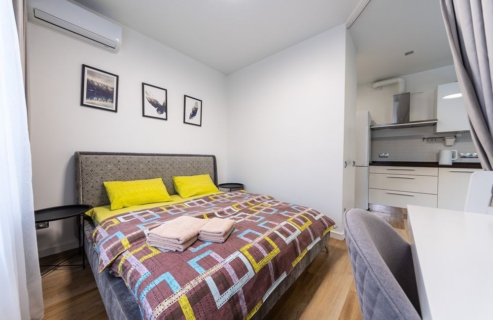 Нова квартира-студіо в ЖК Повітрофлотський квартал. Новий комплекс з охороною у кожному парадному. Квартира знаходиться на 2 поверсі. Кімната укомплектована великим двоспальним ліжком з ортопедичним матрацом, кухнею, обіднім та робочим столом інтернетом, WiFi, духовкою, холодильником, варильною поверхнею. Будинок розташований, за 10 хвилин ходи від метро Політех на розі з Проспектом Берестейський. В безпосередній близькості від будинку розташовані торгові та розважальні центри: ТРЦ Смарт Плаза (супермаркет Сільпо, кінотеатр Оскар, спортклуб з басейном, магазини, кафе), парк КПІ, ТЦ Україна, Цирк, Медуніверситет, Університет КПІ. Дитяча лікарня Охматдит знаходиться за 50 метрів. Також у дворі є великий дитячий та спортивний майданчик з тренажерами та зоною відпочинку. Світло, вода, опалення оплачуються окремо. +38********64