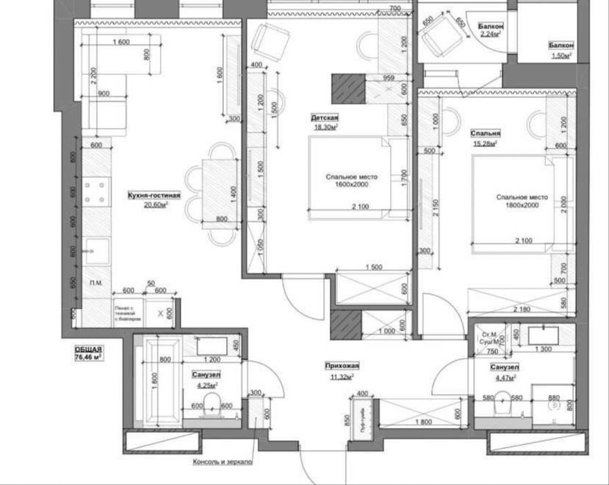 - 76 м²