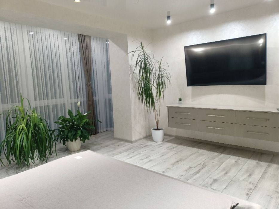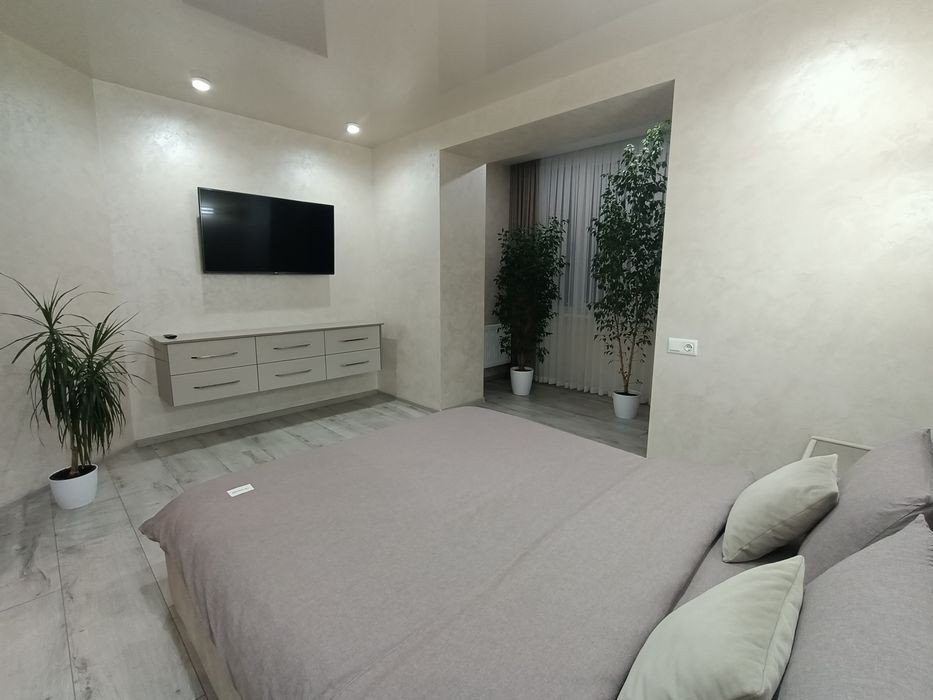 Пропонуємо в оренду двохкімнатну квартиру класу "Люкс" 78кв. м. на 3 поверсі в елітному будинку. Вул. Зарічанська 3/2В. Якісний ремонт, нові меблі, техніка. Підлога вкрита ламінатом в спальнях, в санвузлі з підігрівом. Фен, холодильник, питна вода, телевізор на кухні (32 дюйми) та в спальнях (65 і 40 дюймів), кондиціонери, сенсори температури повітря в кімнатах. Є весь необхідний посуд, постільна і рушники. Велике ліжко (180*200) В другій спальні 160*200 В ванній кімнаті є і ванна і душова кабіна. Також є біде. Супермаркет "Таврія" та "АТБ" поруч. Територія будинку повністю огороджена. Дитячий майданчик. Поруч з будинком зупинка транспорту. Хороша транспортна розв'язка. В під'їзді 2 ліфти. Чистоту та комфорт гарантуємо. Ціна на апартаменти: 2 осіб - 1900 грн 2 осіб в різних спальнях - 2200 грн 3 осіб - 2500 4 осіб - 2800 Квартира не здається для святкувань! Заборонено паління в апартаментах! Заборонено проживання з тваринами!