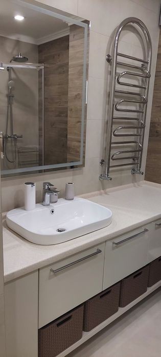 Проспект 125А Новобудова 2хл. Парк Жовтневий 4хл. ТЦ Майдан 6хл. ТЦ Формаркет Дві окремі кімнати Два санвузли Два кондиціонера Вся підлога з підігрівом З вікон гарний краєвид Шум дороги ВІДСУТНІЙ Вітальня якісний розкладний диван для двох людей Спальня двоспальне ліжко 2м × 1.8м з ортопедичним матросом, білизна турція. Паркомісце в підземному паркенгу входить у вартість.