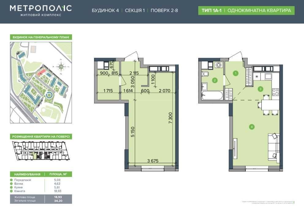 Знижки ДО 15%, Розтермінування до 10 років! Продаж 1-к квартири в ЖК «Метрополіс» Київ, Голосіївський район, вул. Заболотного, ЖК «Метрополіс», метро Теремки. ЖК «Метрополіс» - сучасний комплекс комфорт+ класу від DIM. Закрита територія з охороною та відеонаглядом, підземний і гостьовий паркінг, власний парк і зони відпочинку, дитячі та спортивні майданчики, комерційні приміщення з магазинами й сервісами. Квартира розташована на 3 поверсі 34-поверхового будинку. Загальна площа 34 м2. Стан після будівельників. Поруч метро « Іподром » та « Виставковий центр », метро Теремки (5 хвилин пішки), ТРЦ « Республіка » й « Магелан », супермаркети, школи та дитсадки. Зручний виїзд на Кільцеву дорогу та проспект Академіка Глушкова. Ціна: 53 670$ без комісії! Є інші варіанти однокімнатних квартир, Телефонуйте!