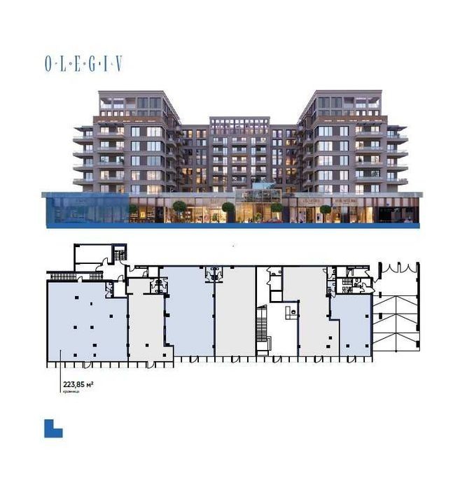 Вул. Олегівська, 36. В преміальному ЖК клубного типу Olegiv Podil 223,85 м². - 1 поверх. Фасад. Вітринні вікна. Відкрите планування. 2 входи. Висота стелі 5,8 - 4,6 м. Потужнісь 35 кВт. 559 625 $. Без комісії.