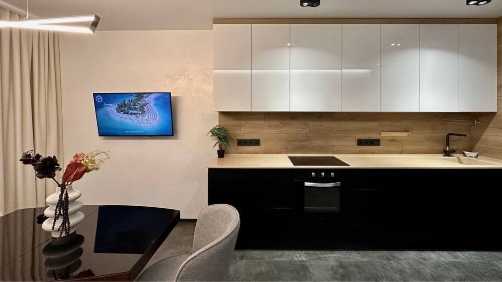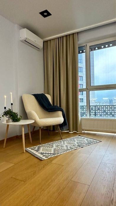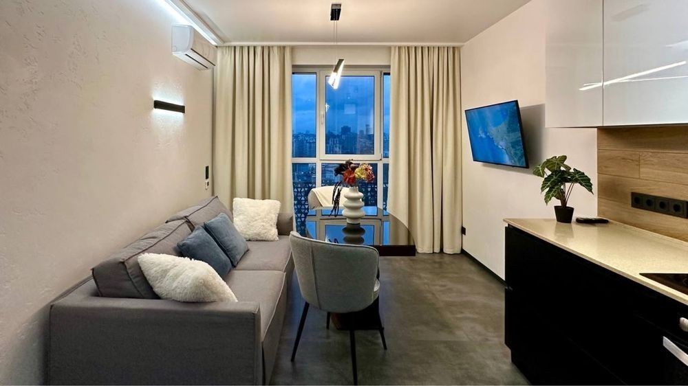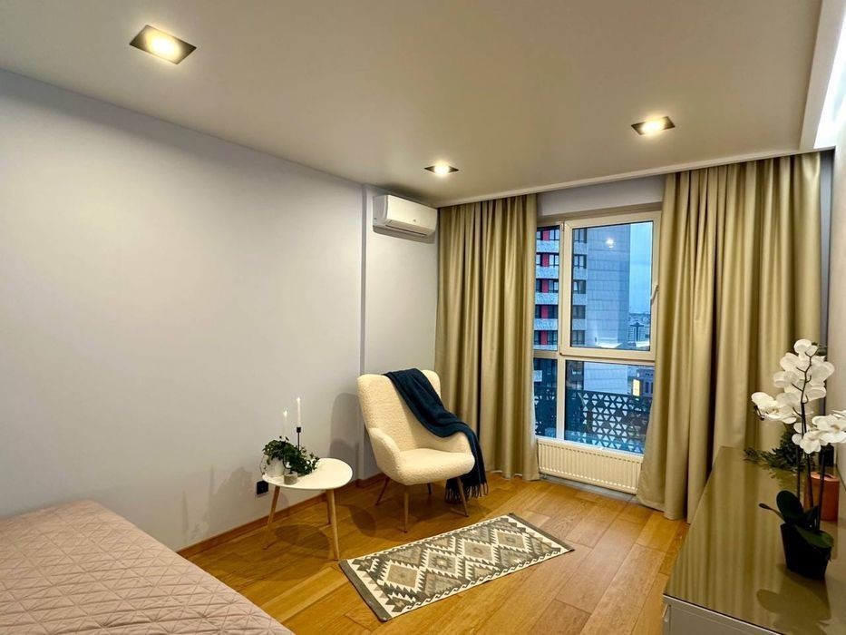 Соломʼянський район ЖК Квартет Вул. Митрополита Липківського 16-а Перша здача. Стильна і неймовірна за функціональною зручністю квартира на 15 поверсі 26 поверхового нового будинку. Загальна площа 42 кв. м. ⁃ окрема затишна спальня; ⁃ вітальня і кухня, об'єднані в єдиний комфортний простір; ⁃ панорамні вікна з видом на схід сонця. ⁃ простора ванна кімната з повноцінною ванною і гігієнічним душем; ⁃ оформлена зручна гардеробна кімната. Якісний, дизайнерський ремонт та повна комплектація новими меблями та побутовою технікою. Продумана система декору і освітлення. Вбудована кухня з духовкою, індукційною плитою, МХП, холодильником, морозильною камерою та посудомийною машиною. Два кондиціонера. На підлозі оксамитовий на дотик паркет, і кахель з підігрівом в коридорі, вітальні і санвузлі У спальні - велике, двоспальне ліжко і комбінована система освітлення. У вітальні - розкладний диван і великий зручний стіл широко спектру застосування. У будинку 3 ліфта з генератором власна охорона і закрита територія. Один з ліфтів спускається прямо в паркінг. Зручна інфраструктура і максимальне наближення до центру Києва. Всі комунікації на лічильниках. Поруч: Соломʼянський парк, метро Вокзальна, ТРЦ УЛЬТРАМАРІН, супермаркети, спортивні зали, басейн, Центральний Ботанічний сад. Довгострокова оренда НЕ ДУБЛЮВАТИ ОГОЛОШЕННЯ
