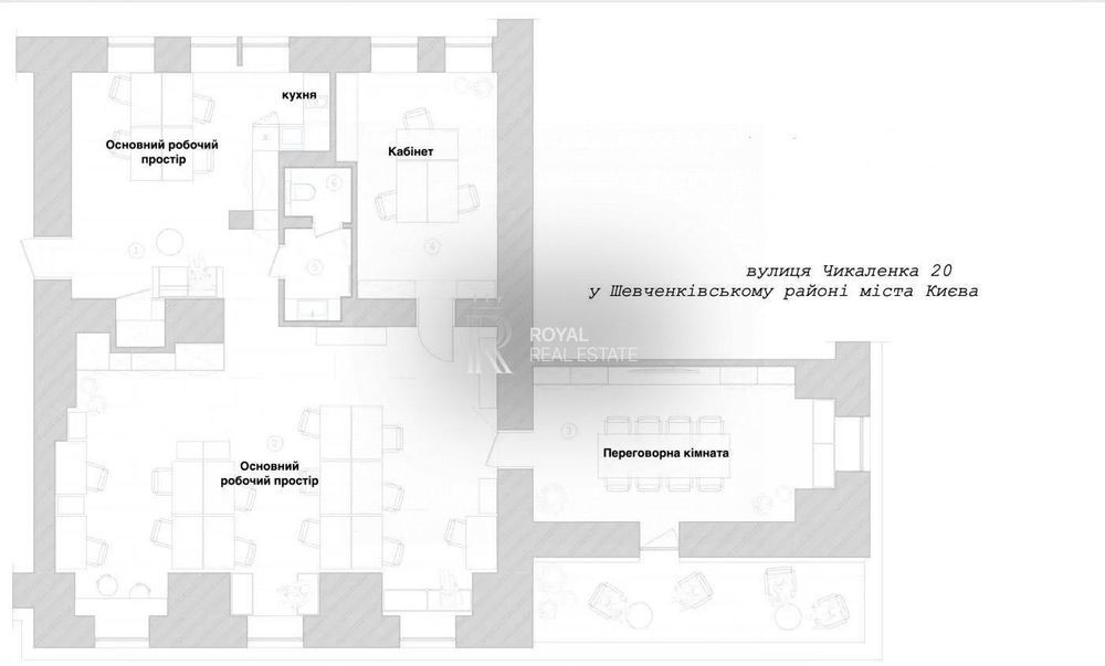 Оренда офісу в історичному центрі Києва з терасою Вул. Євгена Чикаленка (Пушкінська), 20 Шевченківський район 2/6 поверх S=137м² H=3,4 m Планування: Основний робочий простір open space Переговорна кімната з виходом на терасу Кабінет керівника/переговорна кімната Кухня Санвузол Ремонт новий, дизайнерський та продуманий RR15.082