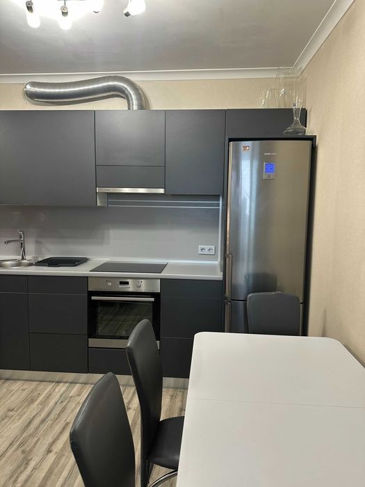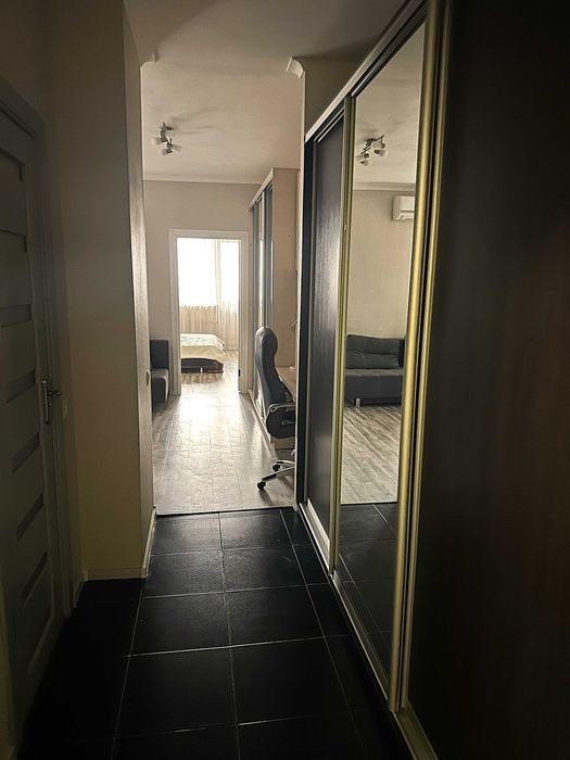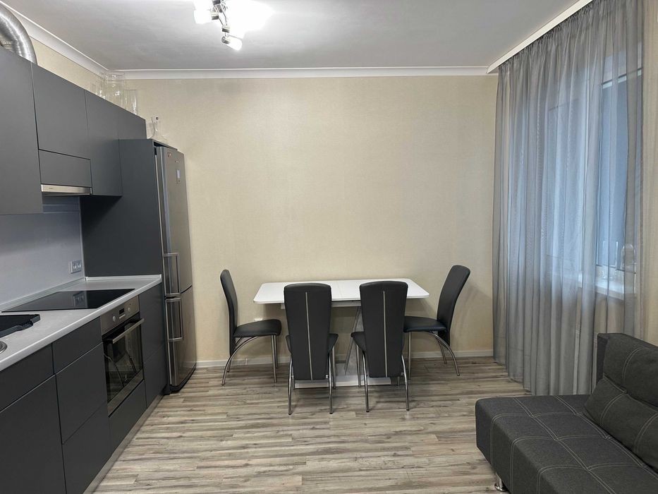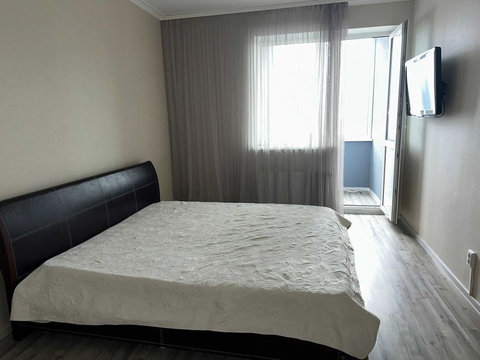 Харківське шосе, буд. 182, 7 хвилин пішки до метро Вирлиця або Бориспільська. Поряд парк партизанської слави, АТБ, Сільпо, нова пошта та інше. В квартирі є все необхідне для комфорту: холодильник, духова шафа, мікрохвильова піч, варильна поверхня, бойлер, телевізор, кондиціонер, пральна машина, вбудовані шафи для зберігання. Квартира спланована як євро-двушка - простора кухня-студіо + спальня. Є дві засклені лоджії з яких відкривається чудовий краєвид. На випадок відключення світла в будинку встановлено генератор. Безперебійно працюють ліфти, опалення, водопостачання, інтернет. Оплата комунальних за лічильниками