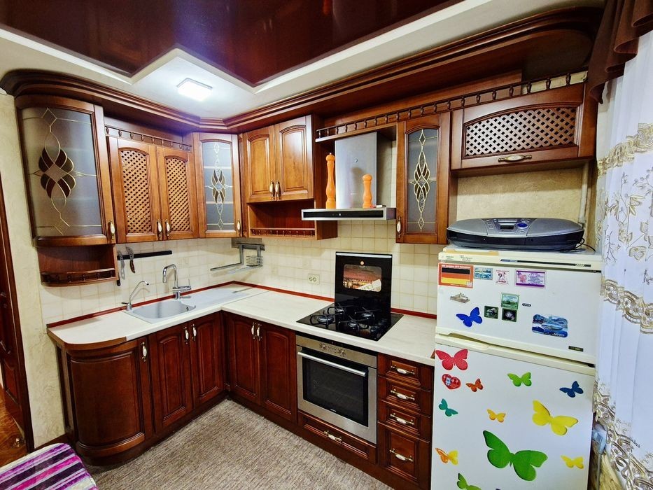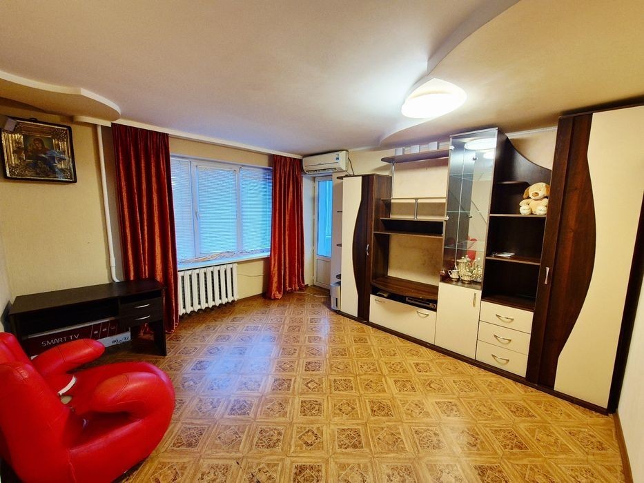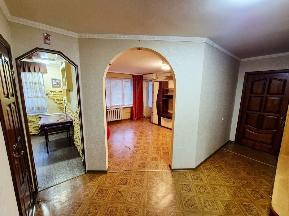 Меблі, холодильник, пральна машина, кондиціонер, тв, інтернет. Кімнати окремі, некутова.