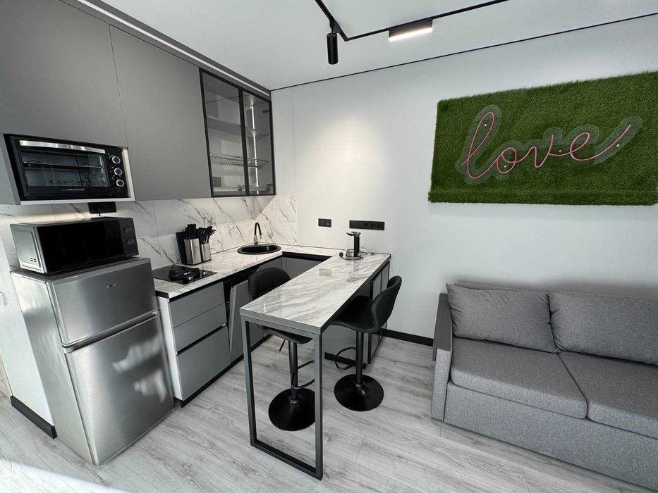 Стильна панорамна квартира-студія в ЖК «Манхетен» - ідеальний простір для життя та творчості! Оренда напряму від власника - без комісії! Квартира з сучасним, ефектним дизайном, яка створює ідеальний фон для зйомок, блогінгу та яскравого життя. Житло абсолютно нове та здається вперше - ремонт виконаний «для себе» з використанням преміальної техніки та дорогих матеріалів. У квартирі є все для максимального комфорту: - посудомийна машина; - тепла підлога по всій квартирі та у ванній; - кондиціонер; - електрична та газова плита; - різні типи професійної підсвітки; - пральна машина; - смарт-бойлер; - охоронна система; - смарт-замки. Головний бонус - автономне світло та живлення! Інтернет працює навіть під час відключень електрики - ви завжди онлайн. На території комплексу - сучасний спортивний майданчик та затишний парк для відпочинку. Можна з тваринкою - додаткова оплата 4000 грн/міс.