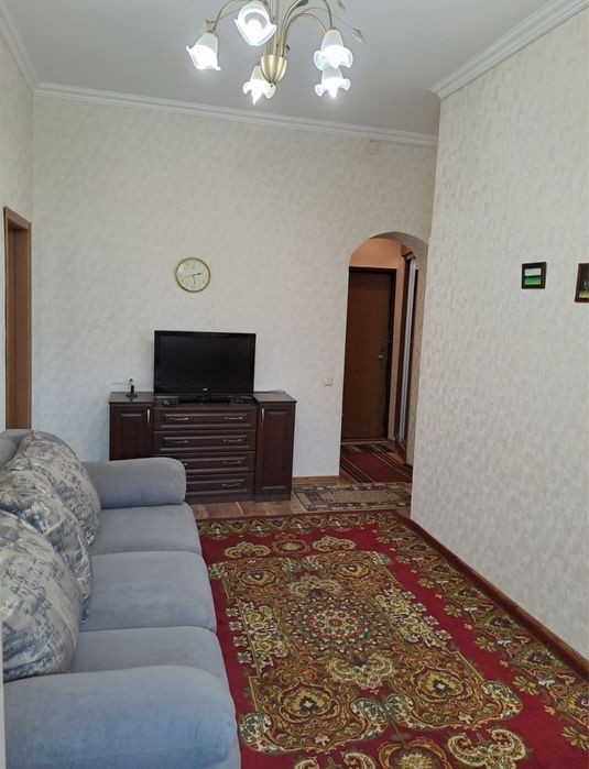Здається двокімнатна гарна та доглянута квартира в Центрі міста ( одна окрема кімната та кухня-студія ). В квартирі централізоване опалення, металопластикові вікна ( балкон засклений ), є усі необхідні для життя меблі та техніка: холодильник, пральна машинка, мікрохвильова піч, пилосос, утюг, варочна панель, духова шафа, телевізор, вайфай. Знаходиться на 2 поверсі.