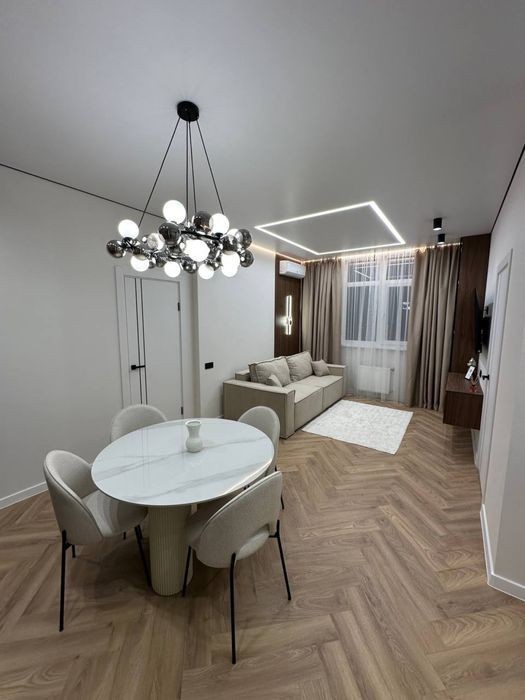ЖК Kadorr City на Краснова 61 Жемчужина 2-комнатная квартира Этаж средний 15/25 Площадь 60,6м. кв. Дорогой дизайнерский ремонт! Очень крутая планировка: Кухня-гостиная 24м. кв. + 2 спальни ( одна с большой террасой ) + гардеробная + санузел. Французский ламинат ёлочка. Каменная столешница на кухне и в санузле. Укомплектована максимально мебелью и техникой! Есть абсолютно все! Самая дорогая и мощная мульти-сплит система кондиционирования, три кондиционера Cooper Hunter! Вся мебель была сделана под заказ, все на доводчиках. Очень много подсветок, квартира очень светлая и уютная. Цена 125,000$ Переуступку оплачивают Возврат от Кадор новому собственнику 655$ Показ в любое время!