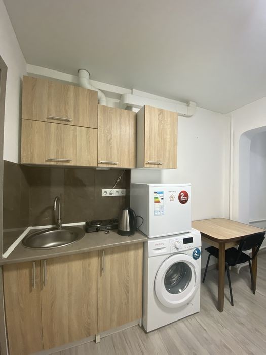 Вул. Шолом-Алейхема 24, 1/9 поверхового будинку, загальна площа 15 кв. м., с/в сумісний. Студія укомплектована всіма необхідними меблями (диван, шафа, стіл, стільці) та побутовою технікою (пральна машинка, холодильник, мікрохвильова піч, бойлер, чайник, плитка електрична, кухонний гарнітур), лічильники на холодну воду та світло. Будинок розташований поряд з магазинами, супермаркетами та оточений мальовничою природою, парк Кіото, кінотеатр, ресторани. Найближча станція метро "Лісова", 800 метрів, 12 хвилин пішки.