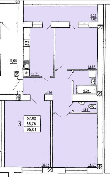 Продам 3 ком. квартиру 95м2 Кирпичный дом Близость центра Газ