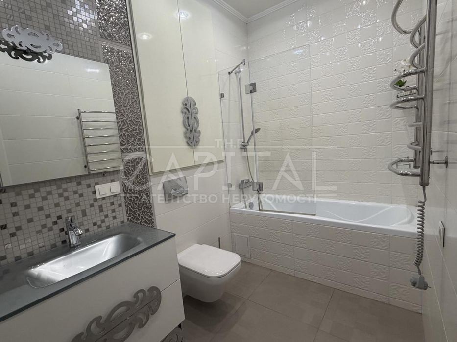 Аренда квартиры, ул. Маккейна, ЖК Central Park, Печерский р-нОренда квартири вул. Маккейна, ЖК Central Park, Печерський р-н Предлагается в аренду 3-к квартира в ЖК бизнес класса - Central Park, по адресу ул. Джона Маккена 7 (Ивана Кудри). Квартира расположена на 10 этаже 24 этажного дома. В самой квартире выполнен авторский ремонт из высококачественных материалов (Tiffany, Versace, Swarovski и тд. ) Вся мебель привезена и сделана под заказ в Италии. В квартире сделана удобная планировка, большая кухня - гостиная с огромным диваном, уютная светлая спальня с большим шкафов, детская комната с игровой зоной, горкой и многим другим для детей. Так же есть своя терраса с уютной зоной отдыха и выход на неё со спальни и с детской комнаты, большая ванная комната, стиральная и сушильная машина, две гардеробных комнаты. Квартира отлично подойдёт для семейной пары с ребенком. Дом монолитно-каркасный с утеплённым фасадом. Закрытая территория ЖК от посторонних. Есть подземный паркинг на 560 паркомест. Удобное месторасположение, на машине до центра Киева можно доехать за 10 минут. Рядом с ЖК Central Park расположено все необходимые для комфортной жизни, а именно: школа, детский садик, магазины, кафе, торговые и офисные центры и многое другое. # **********