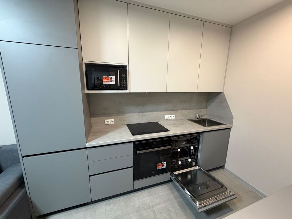 Однокімнатна квартира в ЖК Метрополія 2 Роздільна кімната та окрема кухня студія Планування: -Кухня-студія: вбудована техніка, духова шафа, холодильник, диван, стіл, телевізор, кондиціонер, плита, витяжка, мікрохвильва піч, посудомийна машина. -Спальна кімната: ліжко з ортопедичним матрасом, кондиціонер, шафа, тумби, подвійні вікна, телевізор. -Санвузол: ванна, туалет, раковина, пральна машина, бойлер. Ремонт у квартирі робився для себе, якісно, особливу увагу приділено деталям. Цілодобова охорона. Відеоспостереження. Консьєрж. Паркінг. Спортивний майданчик. У пішій доступності супермаркети, кав'ярні, зупинка транспорту. Метро "Вирлиця" 5 хвилин пішки.