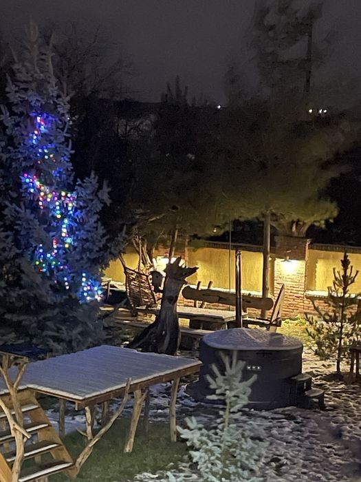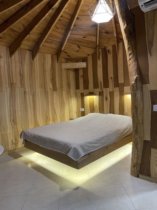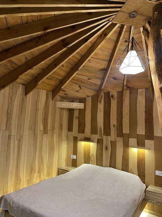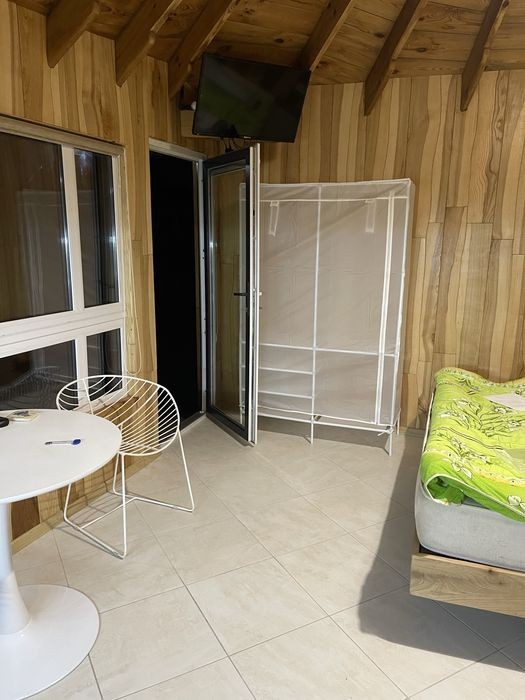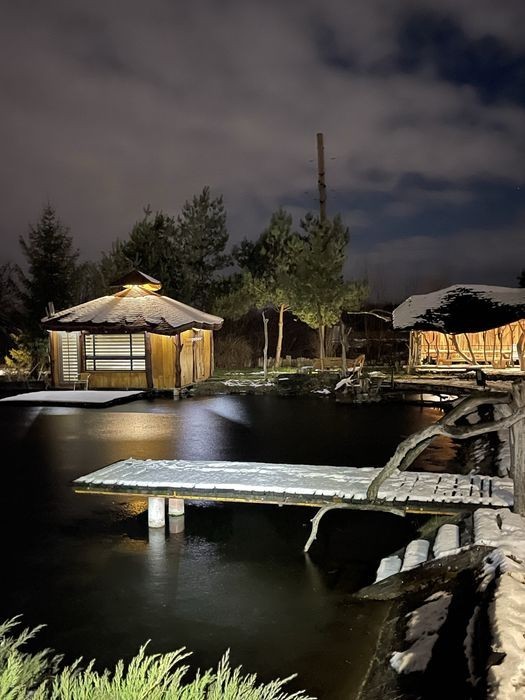 Подобова оренда смарт-будиночку на 2,осіб в тихому місті Дубляни ( 4 км від Львова, до центру Львова 10км) Дуже комфортні та атмосферні апарта-менти, можна виходити на плід, котрий знаходиться на воді та насолоджуватись природою та тишиною. Також на території за додаткову оплату можна замовити чан -3600 (3 год) В хатині є все необхідне для комфортного проживання : Фен, холодильник, кондиціонер, пральна машина, чайник, мікрохвильовка, розкладна сушарка для речей, доска для прасування, праска. Вайфай, парковка. На території є будиночки на більшу к-ть людей ( 12 чол)