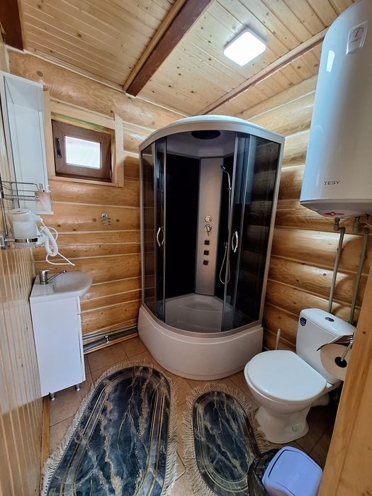 Дворівневий котедж на 3-4 особи. На першому рівні - кухня-вітальня (електрична плита, мікрохвильова піч, холодильник, електрочайник, посуд, мийка, обідній стіл, розкладний диван); санвузол (душова кабіна, туалет, умивальник, фен). На другому рівні - тримісна кімната (двоспальне та односпальне ліжка, телевізор).Можна самостійно готувати їжу на кухні. До найближчого кафе та магазину - 50 м.