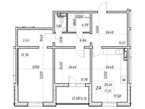 Простора 2к S=77.05м² в ЖК Деснянський. Є-оселя, Є-ремонт. Без комісії