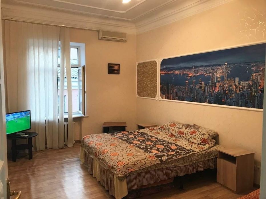 Повністю окрема квартира 80кв. м., 3 окремі ізольовані дверима кімнати та ще велика кухня та велика ванна з туалетом. Вул. Прорізна 10 (вул. Чикаленко), поряд м. Золоті ворота, квартира надається повністю вся одним гостям. Мах 9 людей, Вартість залежить від кількості днів та різні ціни та умови. Вікна з видом на вул. Хрещатик та Володимирську, постійно працюють всі комунікації, світло, вода, опалення, інтернет та телебачення. Ліжка з великими ортопедичними матрасами та меблями. Кухня вбудована. Поряд м. Театральна, Хрещатик, Майдан Незалежності, Золоті ворота. 5хв пішки. Безпечна локація. Вул. Прорізна, Михайлівська, Велика Васильківська. Оплата при поселенні.