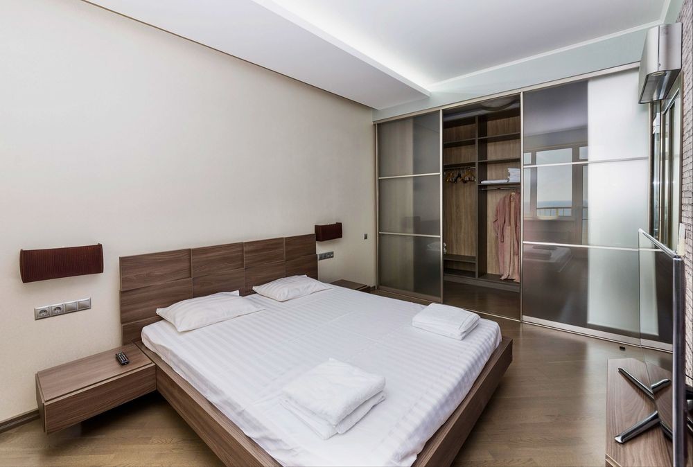 Идеальные апартаменты на большой семьи, 2 спальни я+ большая кухня гостинная, полностью видовая, 4 кондиционера, 2 гардеробные, до лета