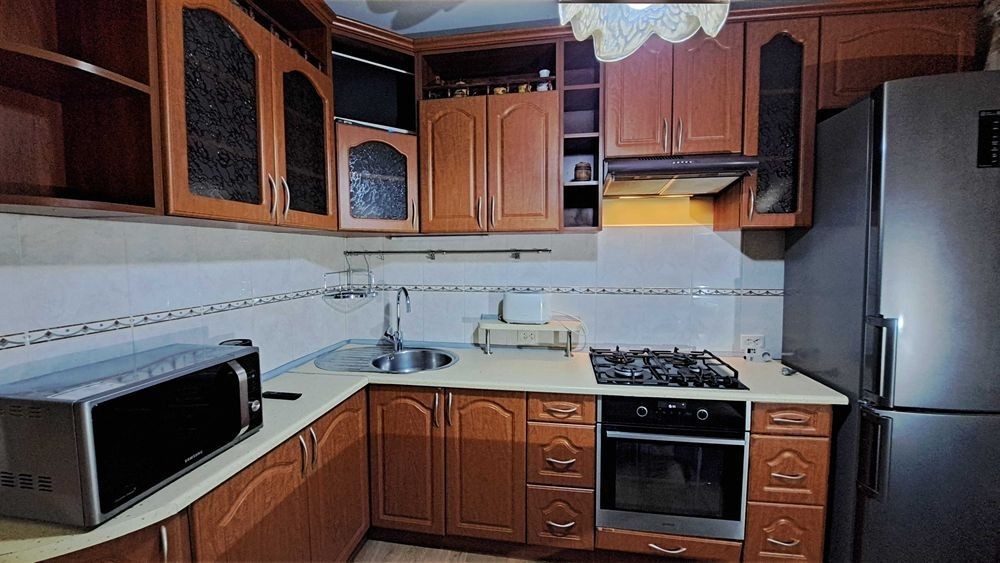 Велика 2х кімнатна, без комісії. В. Гавела 34-В. «Медгородок», Відрадний, НАУ. Загальна площа 56 м. кв., кухня 9 м. кв., дві окремі кімнати, 2 засклені лоджії, с/у та ванна кімната - окремо. 7й поверх 10 поверхового цегляного будинку. Є газ. Квартира зі всіма необхідними меблями, 2 дивани, багато місць для зберігання: велика шафа купе, меблі в коридорі, вітальні та кухні, шафа для зберігання на лоджії. Техніка: бойлер, 2 ТВ, мікрохвильова, духова шафа, чайник, тостер, витяжка, пральна машина, морозильна камера, холодильник. Частково є посуд. Інтернет та кабельне ТВ підключено. Є тренажер Орбітрек та дитяча спортивна стінка. Загальний стан квартири - добрий. Тихий та затишний двір, є місця для паркування. Розвинена інфраструктура. У пішій доступності супермаркети, ринок, торгові центри, кав'ярні, велика кількість магазинів, школи, дитячі садки, поліклініка, Нова Пошта та інше. Поруч: Медгородок, НАУ, КПІ. Зручна транспортна розв'язка. Поруч з будинком зупинка громадського транспорту. 7 хв. пішки - до швидкісного трамвая. м. Берестейська - 10-12 хв. (трамвай, маршрутка). м. КПІ - 15 хв. ( швидкісний трамвай). м. Вокзальна - 20-25 хв. Довгостроковою. Для дітей поруч школи. Можливо з тваринами. Оплата за 1й та останній місяці. Без комісії.