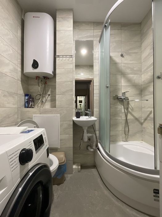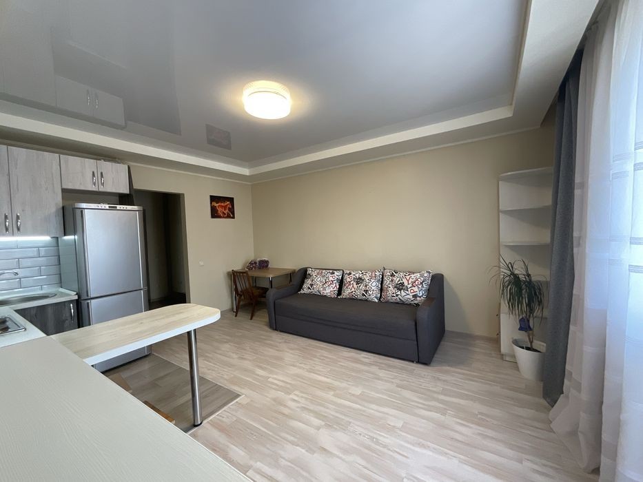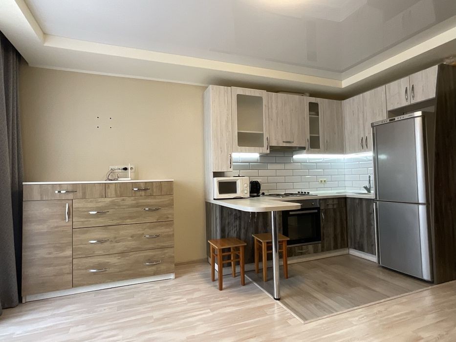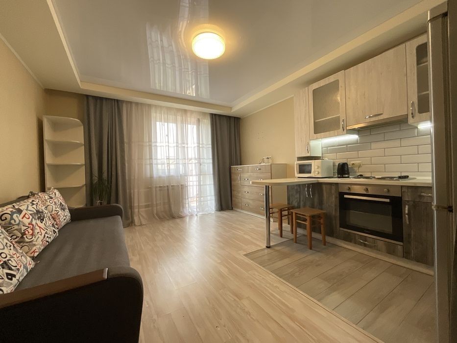 Здається в довгостроковому оренду затишна однокімнатна квартира студія в клубному будинку за адресою вулиця Григорія Гуляницького, 39 А. - Розташована на 4 поверсі з 8; - 31 м2; - Тепла підлога на кухні, в ванній та в передпокої; - Укриття в самому будинку; - Ліфт; сходи; - Мінімальні комунальні платежі; - Південна сторона; дуже тепла взимку; - Балкон, чудовий краєвид з вікна; - Зупинка транспорту. Поруч магазини, кафе, аптеки, спорткомплекс Sportlife і т. п. Повністю укомплектована меблями та технікою: Вбудовані кухонні меблі, електропанель та електродухова шафа, холодильник, мікрохвильова піч, витяжка; розкладний диван, письмовий стіл, комод, стелаж для книг. В передпокої велика шафа-купе. В санвузлі, душова кабіна, унітаз, пральна машина, бойлер, умивальник та тумба-комод. Розглядаємо порядних орендарів: Молода пара без дітей; для одного хлопця чи однієї дівчини (можна для студента чи студентки, курсанта чи курсантки). Без тварин! Перегляди можливі в 1 половині дня або ввечері після 19 години. Оплата: перший місяць + залогова сума + 50% комісія.