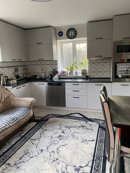 Євро ремонт. Всі меблі. Техніка (пральна машина, холодильник, духовка, мікрохвильова піч, посудомийна машина). Індивідуальне електричне опалення (котел) + пічка на дровах. Тепла підлога у ванній кімнаті. Загальну площа 100м2. Великий приватний двір. Можна із дітками, тваринками. На довгий термін. Із березня ціна буде 500€.