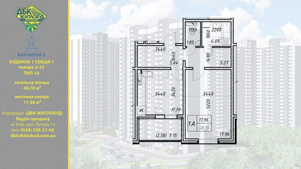 БУДИНОК №2 Продається 1-кімнатна квартира в новому ЖК "Navigator 2" в Оболонському районі м. Києва по вул. Коноплянська 22Б Зручне та функціональне планування площа: 48.78м2 Плаща кухні: 12 м2 Висота стелі: 2.7м Утеплення - мінеральна вата Стіни - залізобетон. Квартира з внутрішньою обробкою і усім необхідним для життя: -металлическая вхідні двері, металопластикові вікна Rehau; -межкомнатные шпонированные двері з сучасною фурнітурою -полный комплект сантехнічного устаткування; -радиаторы, розетки і вимикачі; -обои з урахуванням характеристики приміщення і багети на стелі; -линолеум і пластикові плінтуси; -лічильники води, електроенергії і ТЕПЛО! Спільна прибудинкова територія з дитячим майданчиком, паркінгом, місцями для прогулянок та відпочинку. Розвинена інфраструктура, адже поруч є все необхідне для комфортного життя: садочки, школа, ТЦ «Караван», ТЦ"Північний", станції метро "Почайна" та "Оболонь" - 15 хвилин, автобусні зупинки - 500 м. Продаж без комісії для покупців! Телефонуйте, відповім на всі питання!