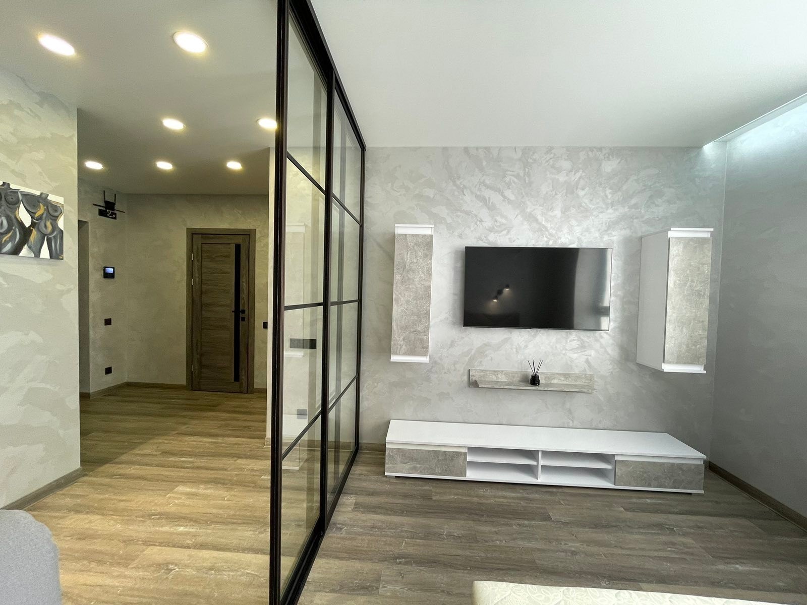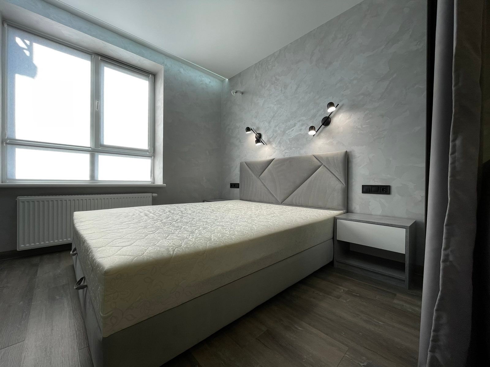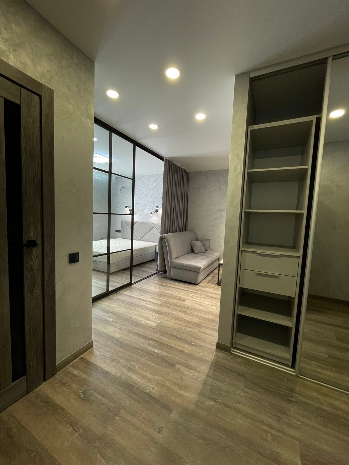Продам модные апартаменты ЖК Брама, 50/22/16, спланирована в просторную кухню со столовой зоной, спальня+гостиная разделена зонально раздвижной стекляной перегородкой с чёрной фурнитурой Лофт Ремонт произведён только из качественных материалов: водопровод+отопление+смесительная группа - производства Италии, Чехии, Германии! Электрика - Schneider Electric Радиаторное отопление + теплый пол по всей квартире Гардеробная меблирована. Смонтирована мобильная межкомнатная раздвижная система и спланирована на 2 полноценные комнаты. Все стены - декоративное покрытие с эффектом бархата Бесщелевые натяжные потолки с лед подсветкой. Напольное покрытие - кварц винил (кроме санузла) Установлен домофон и высокоростной интернет Триолан Полная комплектация качественной мебелью и техникой